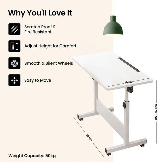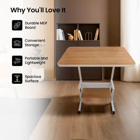 Manual Height Adjustable Table For Adults, Students, Kids |Portable Table, Computer Table, Breakfast Table With Wheels| Office Table For Work From Home, Bed Study Table |60*40 cm,Walnut,1