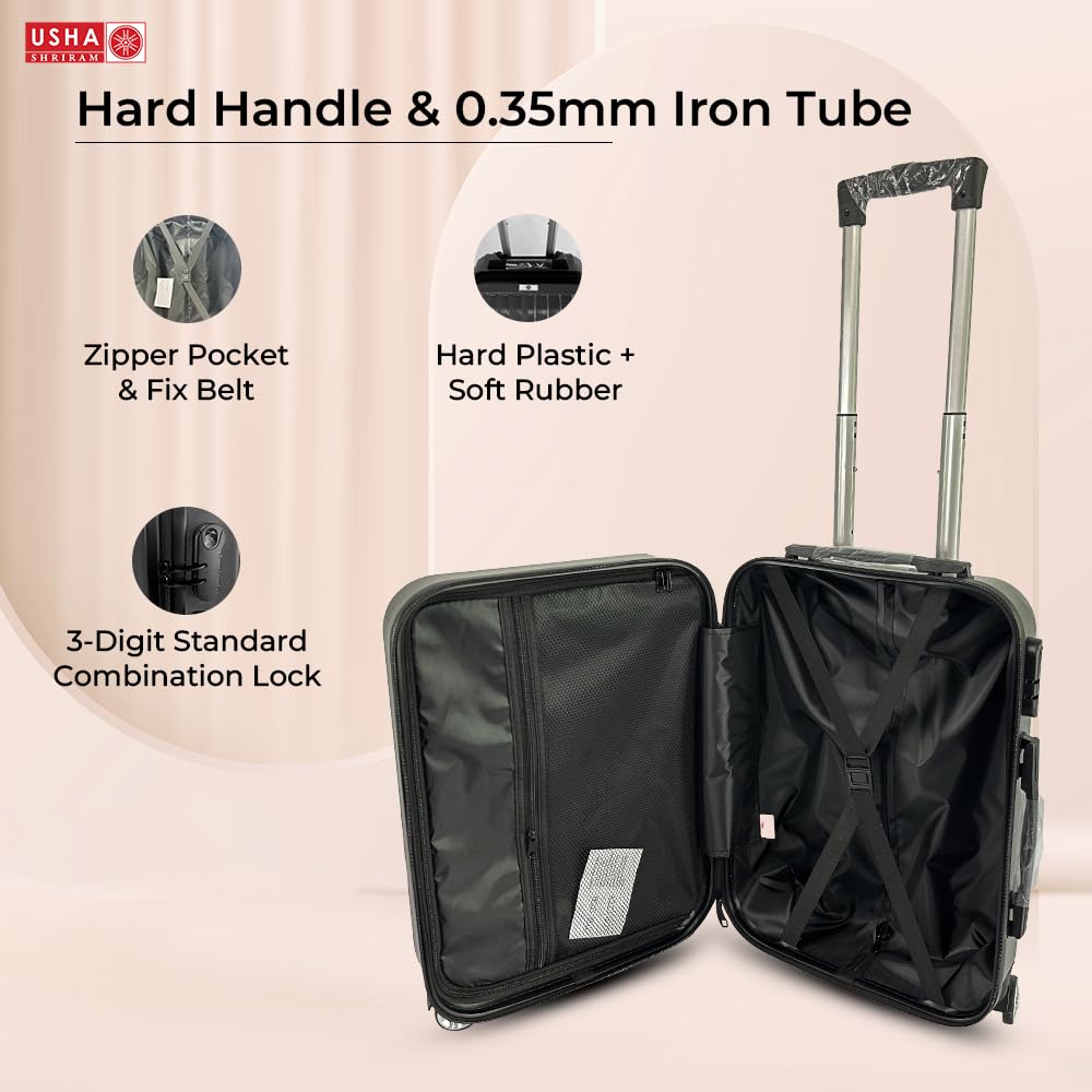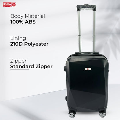 • Timeless Design: The USHA SHRIRAM ABS luggage bag features a sleek and sophisticated design, perfect for any travel occasion. Its attention to detail in stitching and branding adds a refined touch to your travel gear.