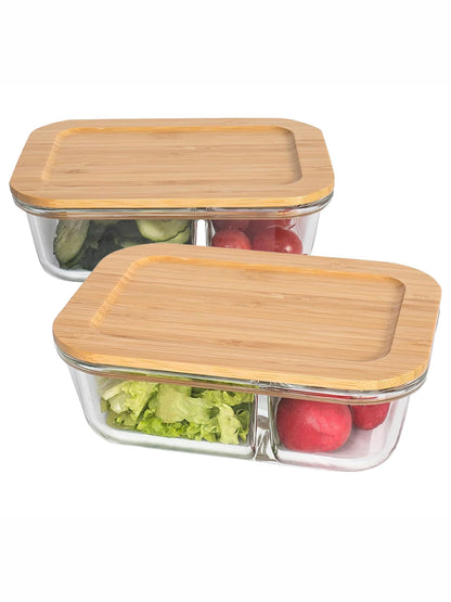 Borosilicate Tiffin Box| Tiffin Box for Office for Men Women| Leak-Proof Lunch Box | Borosilicate Lunch Box with Wooden Lid | (Set of 2 : Small 580ml+ Large 980ml)
