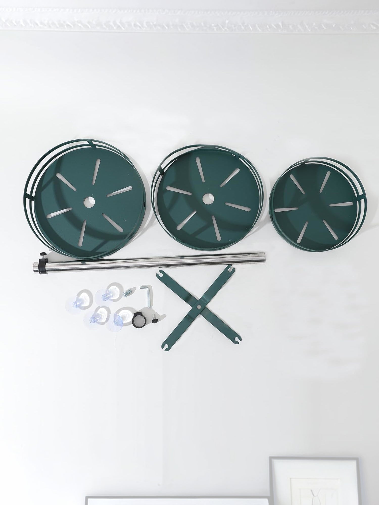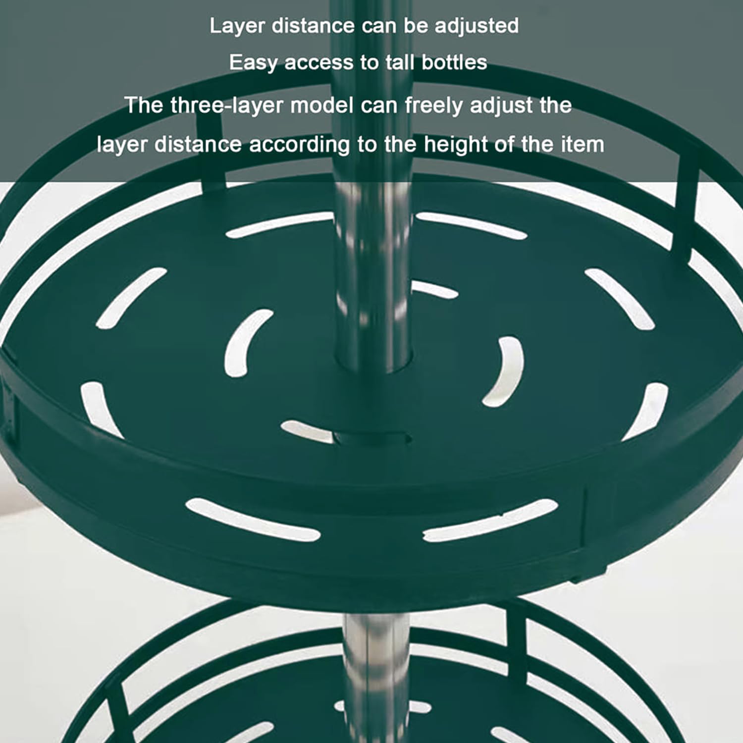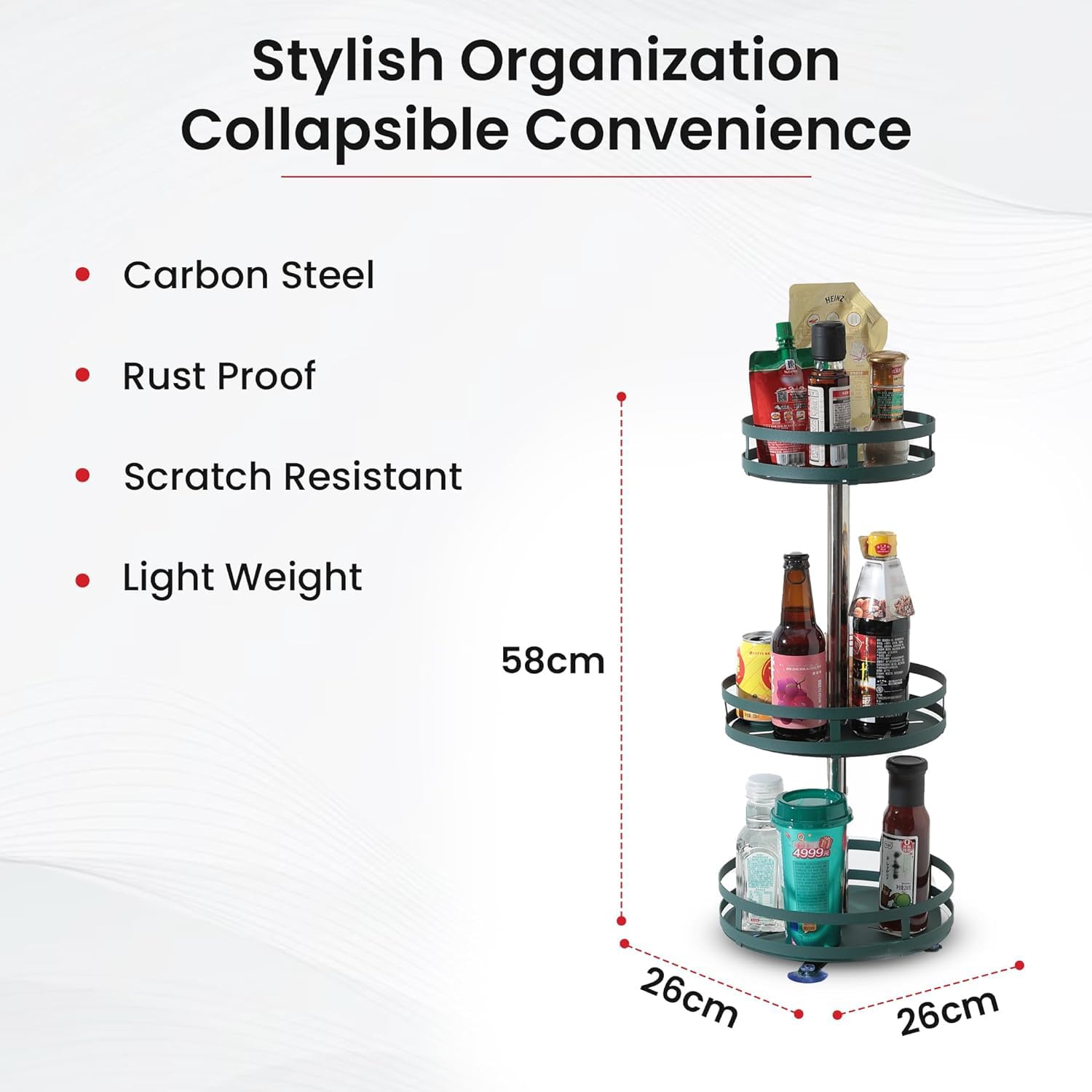 Kuber Industries 3-Layer Rotating Spice Rack|Circular Shelf for Cabinet Countertop|360-Degree Rotable Kitchen Trolley|Fruit Basket (Dark Green)