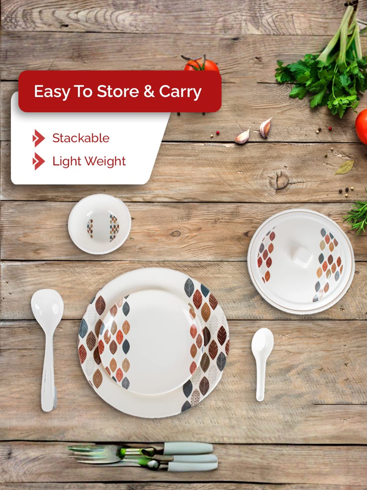Dine Smart Melamine 32 Pieces Stylon Dinner Set Heat-Resistant | Durable | Shatter-Resistant | Light-Weight | BPA Free (Leaf Dot)