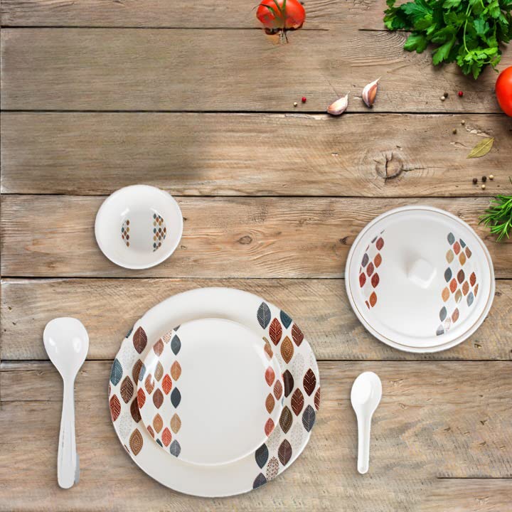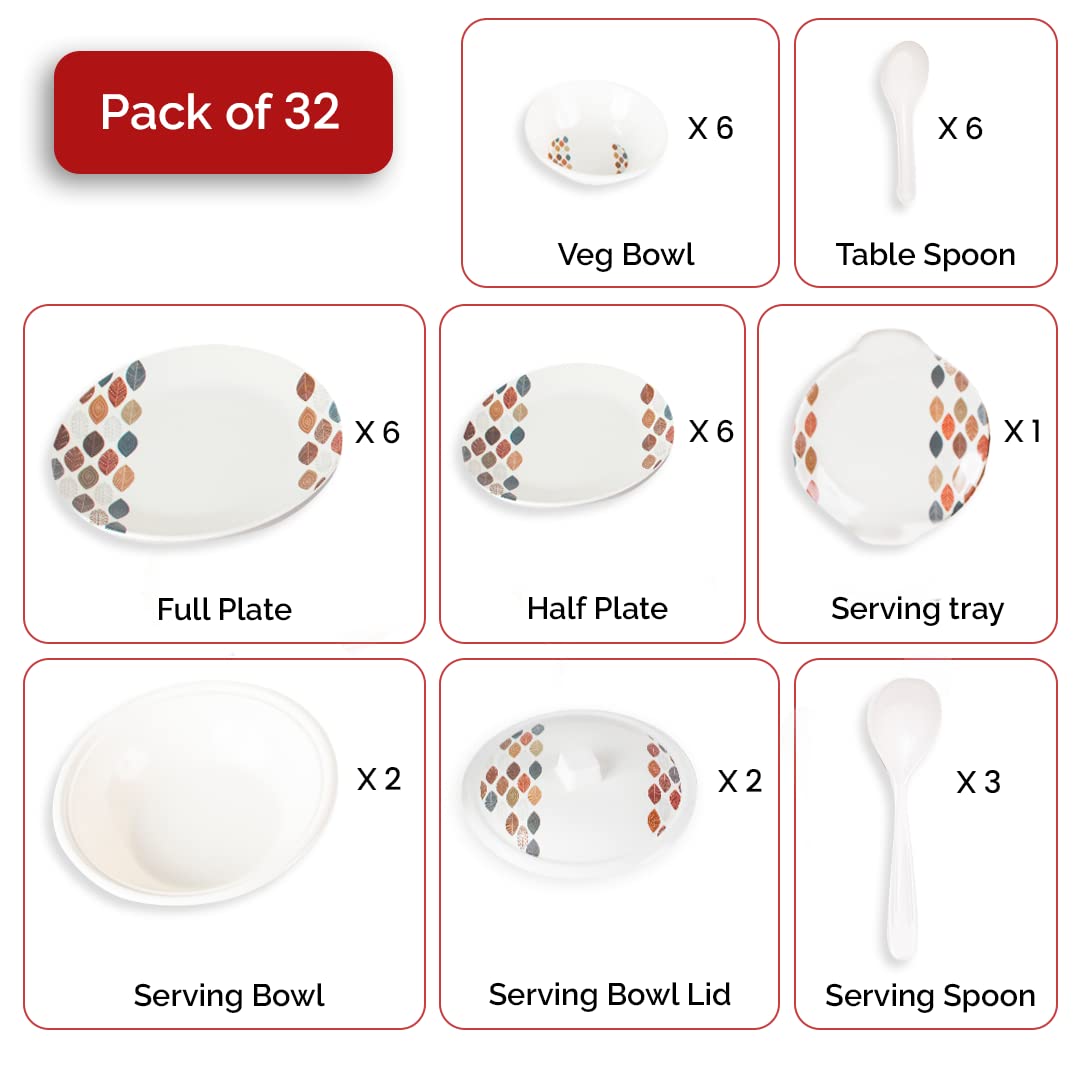 USHA SHRIRAM Dine Smart Melamine 32 Pieces Stylon Dinner Set Heat-Resistant | Durable | Shatter-Resistant | Light-Weight | BPA Free (Leaf Dot)