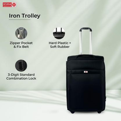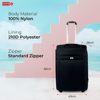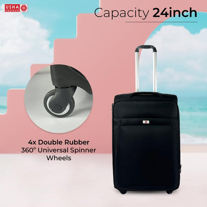 USHA SHRIRAM Fabric (Check-in Bag) 24 inch Luggage Bag (65cm) |Trolley Suitcase for Travel | Travel Luggage for Men Women |360 Degree Wheel | Travel Bags for Luggage Trolley Carry On Suitcase (Black)