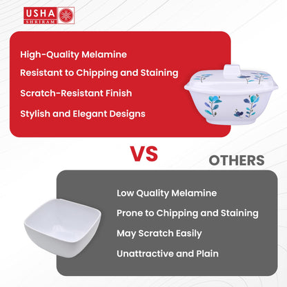 USHA SHRIRAM Melamine Big Serving Bowl with Lid - 2 Pcs (1.4L each)