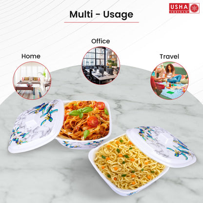 Elevate your dining experience with the USHA SHRIRAM Melamine Big Serving Bowl with Lid. This set includes two spacious bowls (1.4L each) designed for serving rice and a variety of other dishes. With a stunning blue marble finish, these bowls seamlessly blend functionality with aesthetic appeal.