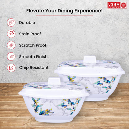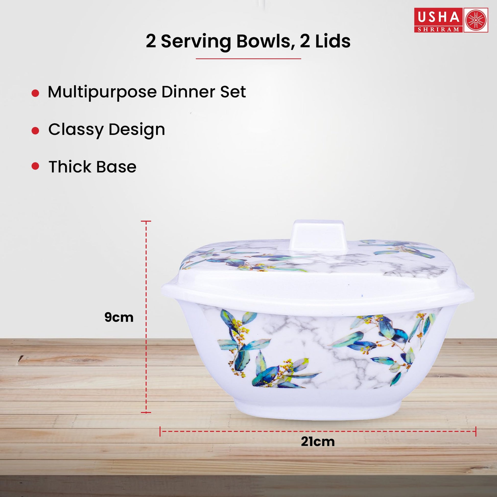 USHA SHRIRAM Melamine Big Serving Bowl with Lid (2 Pcs - 1.4L each) |Rice Bowl for Serving | Unbreakable | Heat Resistant | Mixing bowl with Lid | Light Weight | BPA Free (Blue Marble)