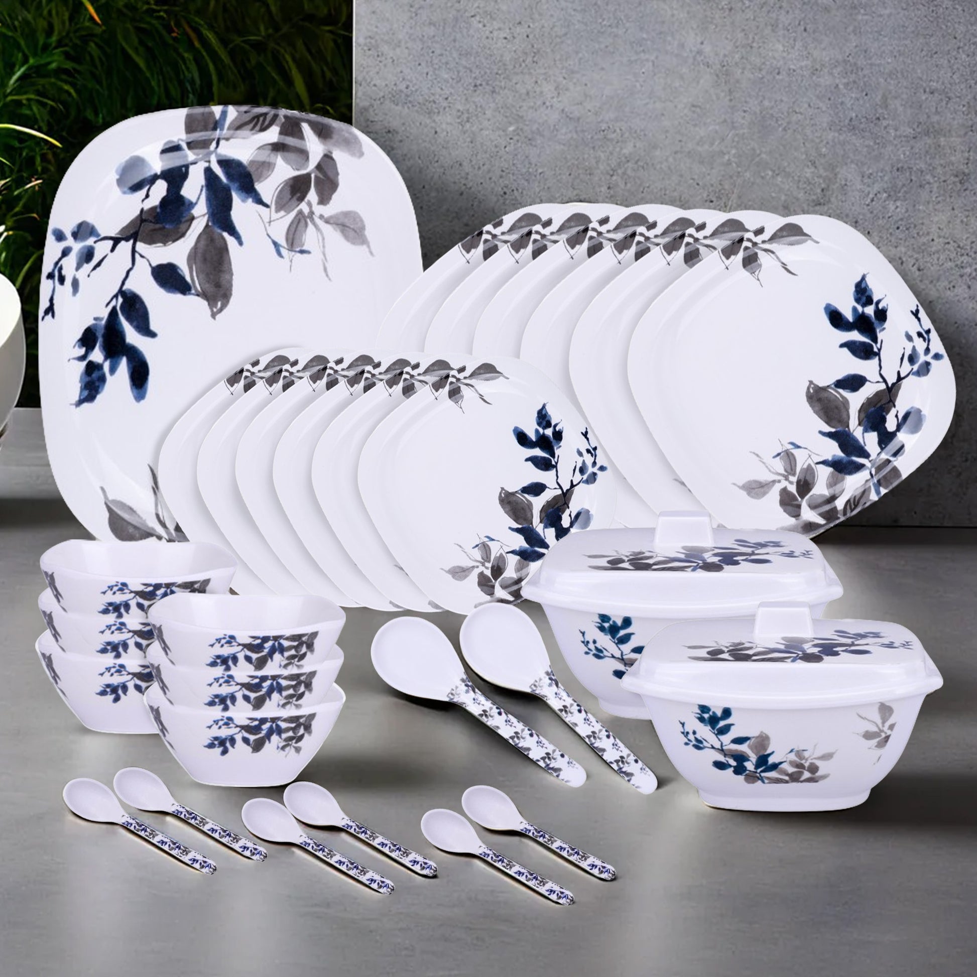 Melamine Dinner Set (31 Pcs) | Kitchen Set for Home | Unbreakable Plates and Bowls Set | Dinner Ware Set | Dinner Ware Set | Fiber Dinner Set | Gift for Marriage (Blue Bail)