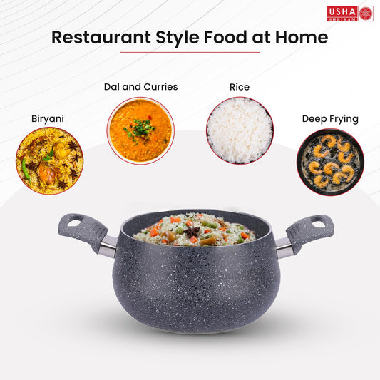 USHA SHRIRAM Non Stick Biryani Handi (3L) | Casserole with Lid | Aluminium Handi For Cooking | Biryani Pot | Cook N Serve Pot With Lid | Gas & Induction Handi | Cooking Handi Pot