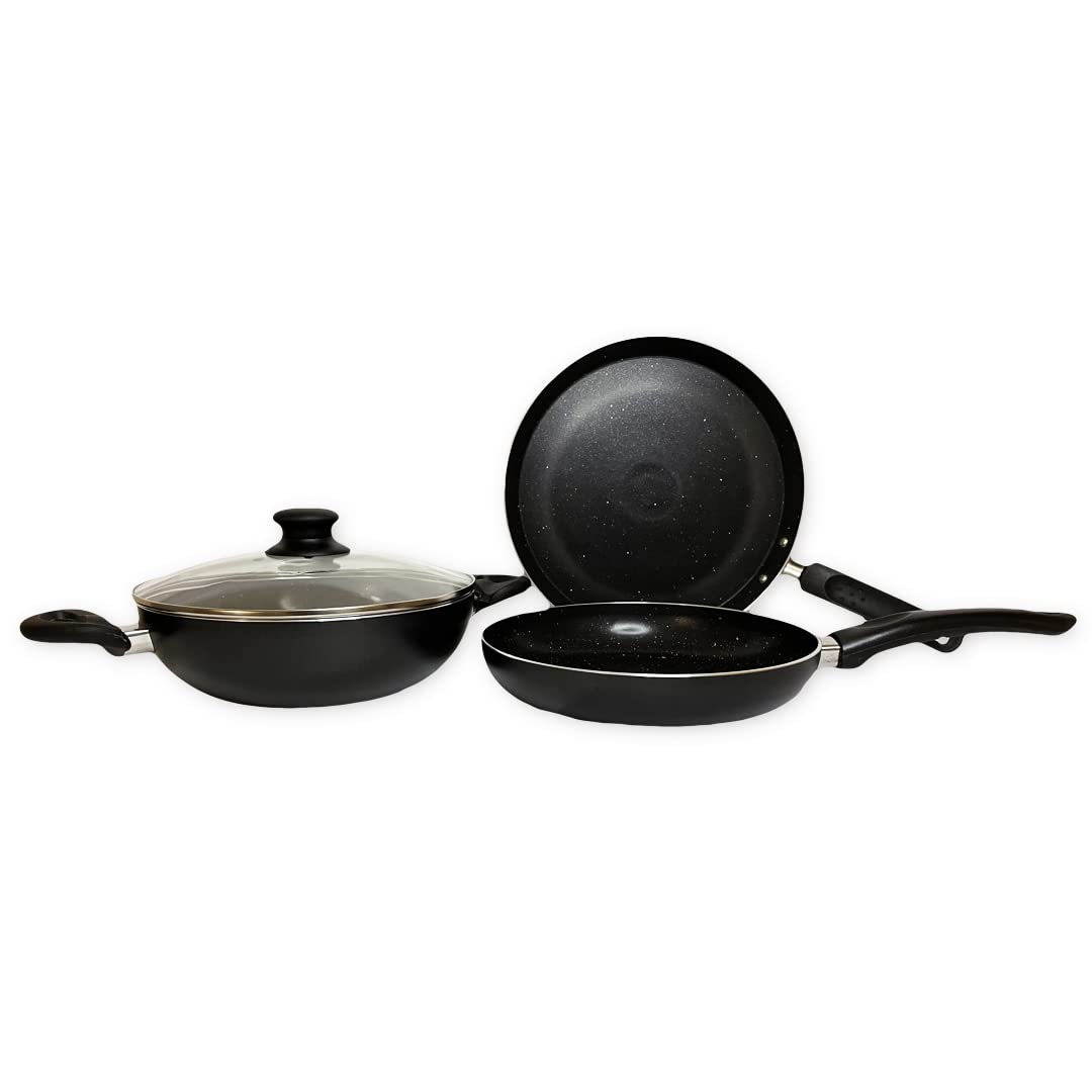 Non Stick Set | Lid (1Pcs) | Non Stick Tawa | Non Stick Kadai | Non Stcik Frying Pan | Stove & Induction Cookware| Multipurpose Lid for Kadhai & Fry Pan (Non Stick Set with Lid - Black)