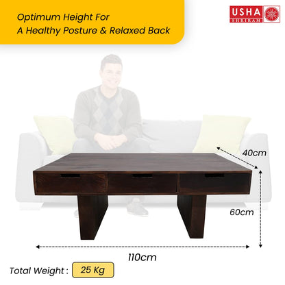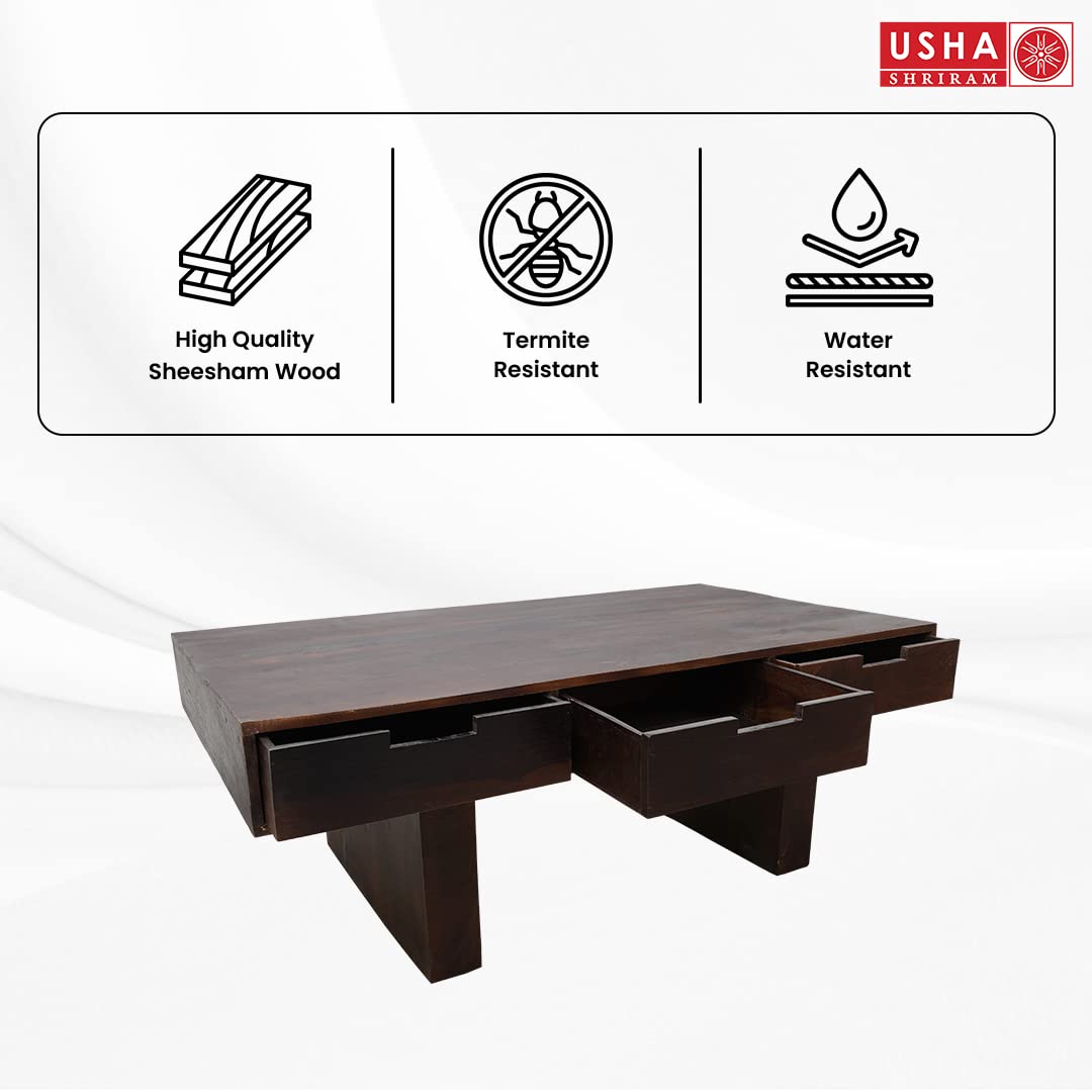 USHA SHRIRAM Sheesham Wooden Center Table for Living Room | Coffee Table for Living Room |Centre Table for Living Room| Tea Table for Living Room| Living Room Furniture| Sofa Table - Brown