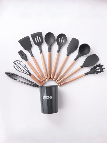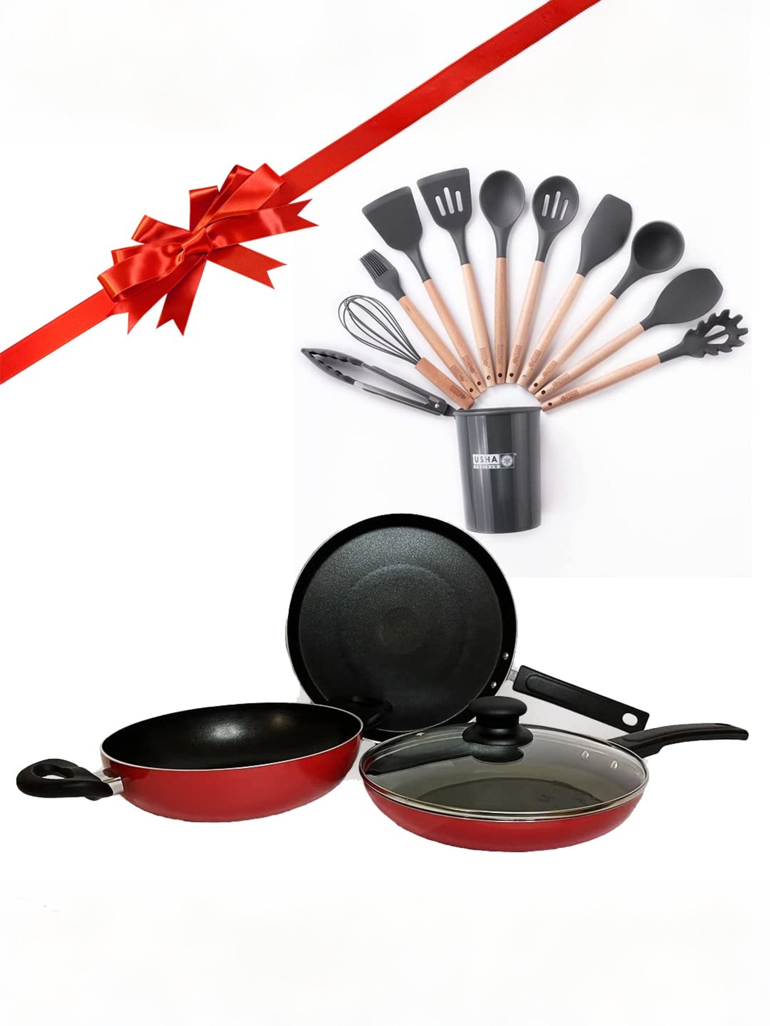 USHA SHRIRAM Silicon Spatula Set for Non-Stick Pans | Heat Resistant, Durable, Cookware Set | BPA Free & Odourless| Non-Stick Utensil Set for Cooking (Spatula Set(12Pcs) + Non Stick Set(Red))