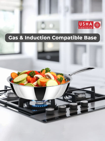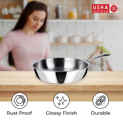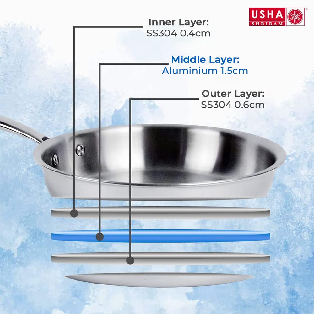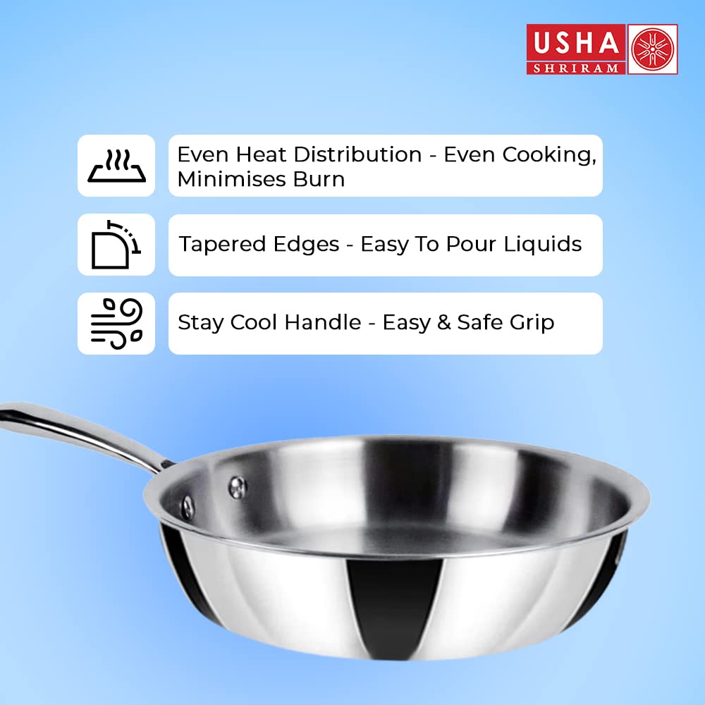 USHA SHRIRAM Triply Frying Pan: 1.2 L Non-Stick Cooking Pan with Lid | 20 cm | Black