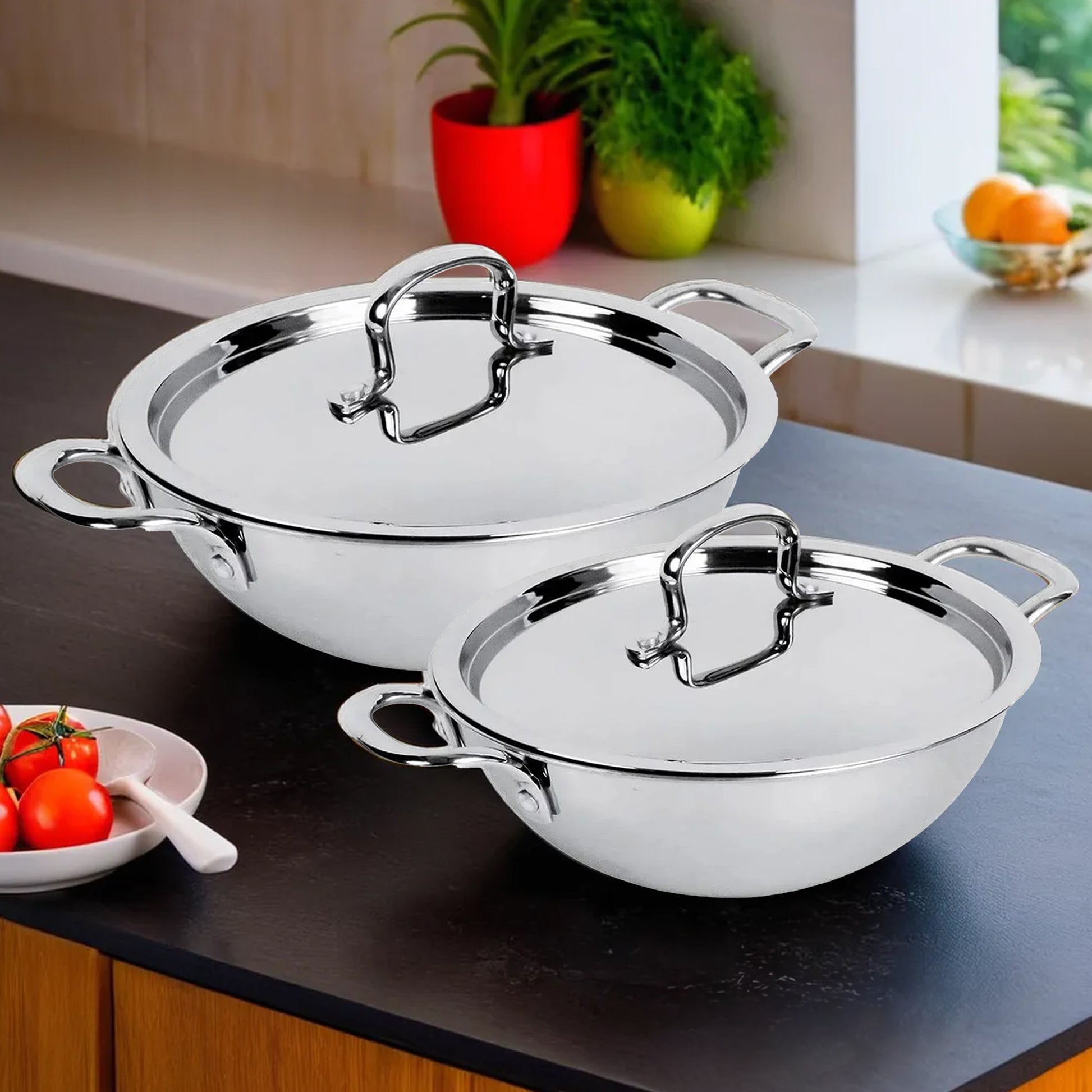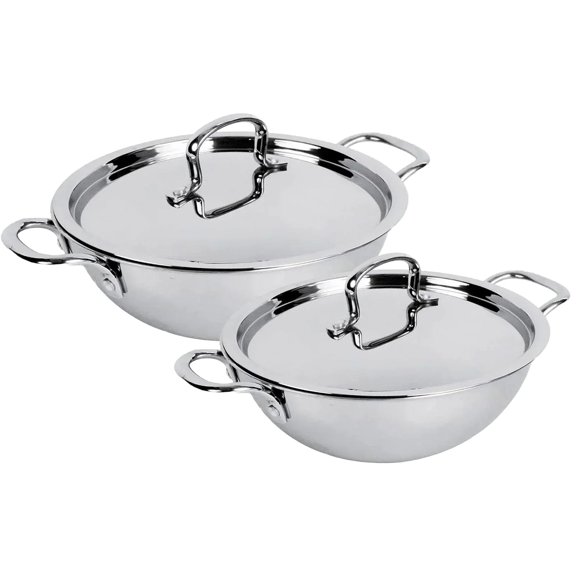 Triply Stainless Steel Kadai with Lid (3.5L) & Non Stick Kadai with Lid (4.4L) | Stove & Induction Cookware | Heat Surround Cooking | Heavy Bottom Kadai | Deep Frying Kadhai