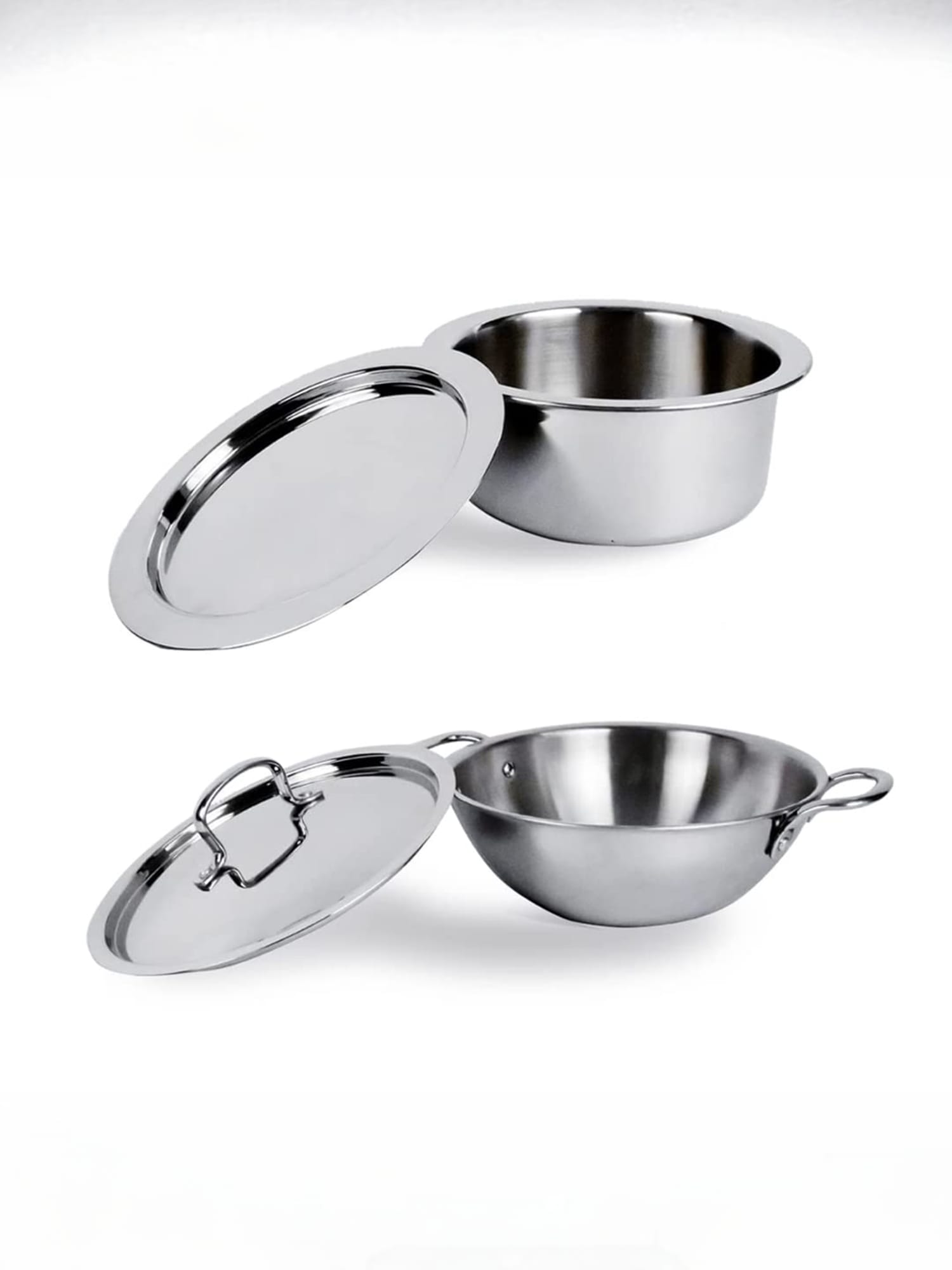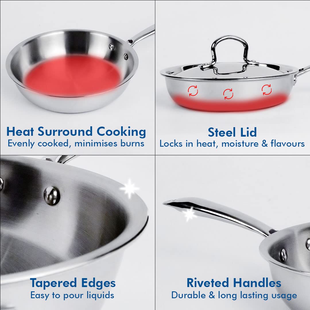 Triply Stainless Steel Kadhai (2.2L) and Tope (1.5L) Set | with SS Lid | Heavy Bottom Cooking Utensils | Gas & Induction Base | Stainless Steel Cookware | Cooking Pot | Cook N Serve Pot |