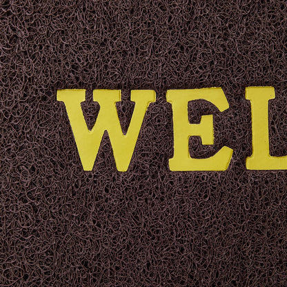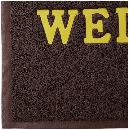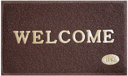 Introducing the Printed Welcome Door Mat by Kuber Industries. This large rectangular door mat measures 58 x 38 cm and is made from durable PVC material, ensuring it withstands all weather conditions. The elegant brown color and solid print add a touch of sophistication to any entryway, making it an essential addition to your home.