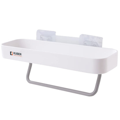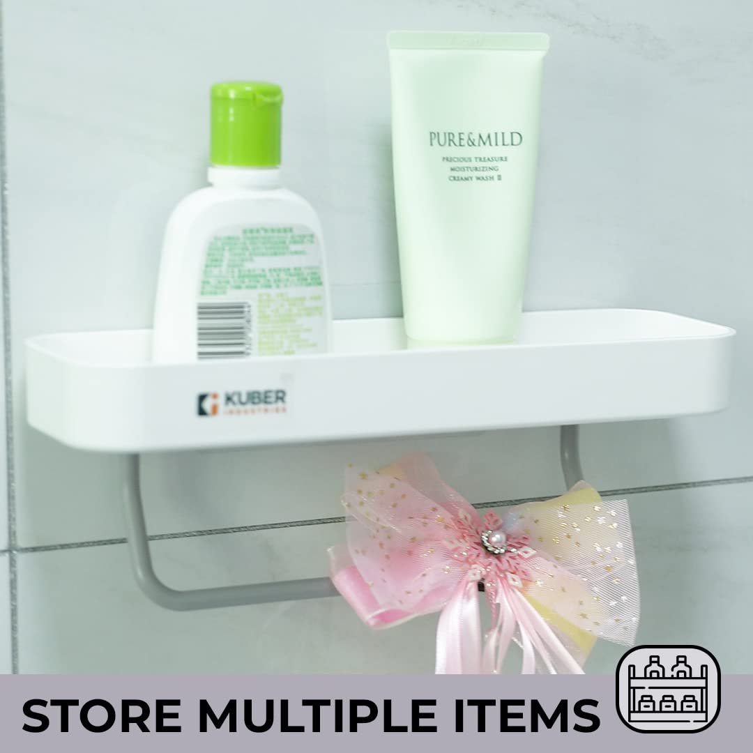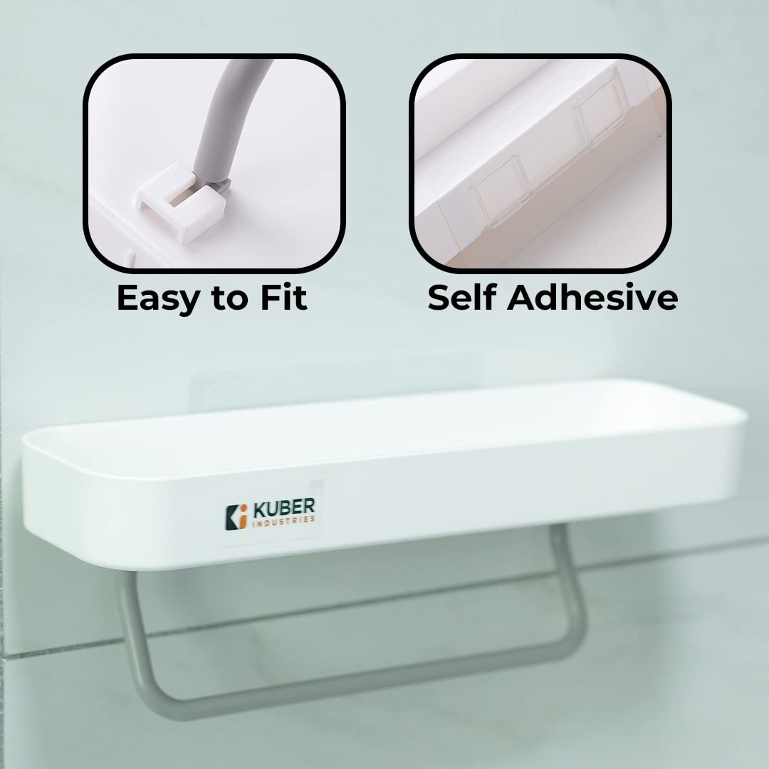 Self Adhesive Bathroom Shelf | Adhesive Shelf for Kitchen - with Hooks & Magic Sticker | Bathroom Organizer - GI Steel (Pack of 2)