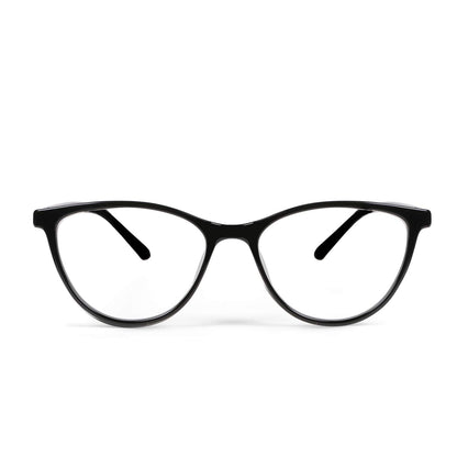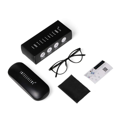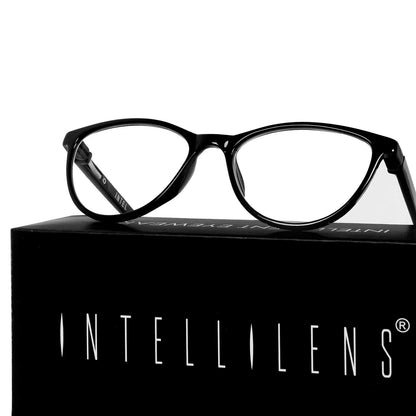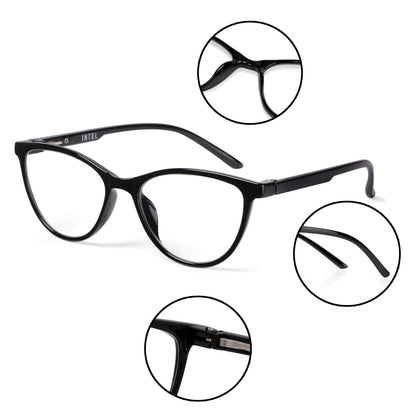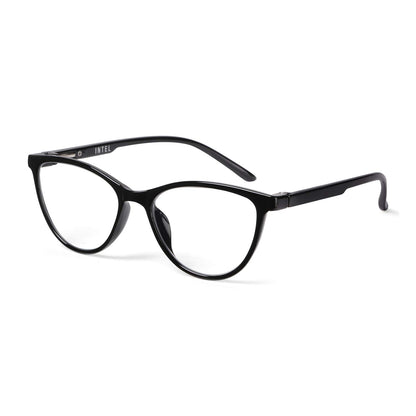 Intellilens | Zero Power Blue Cut Computer Glasses | Anti Glare, Lightweight & Blocks Harmful Rays | UV Protection Specs | For Men & Women | Black | Cateye | Medium