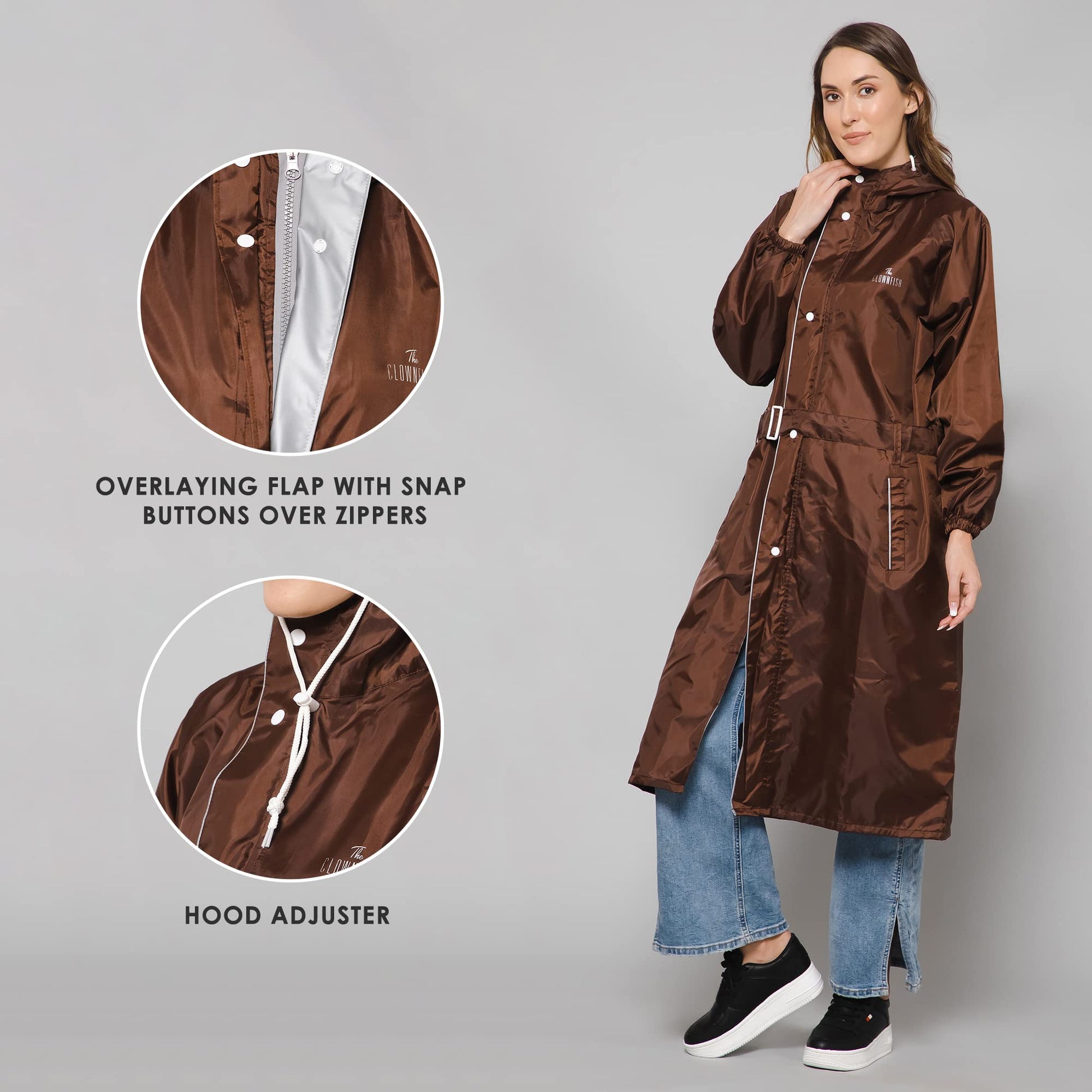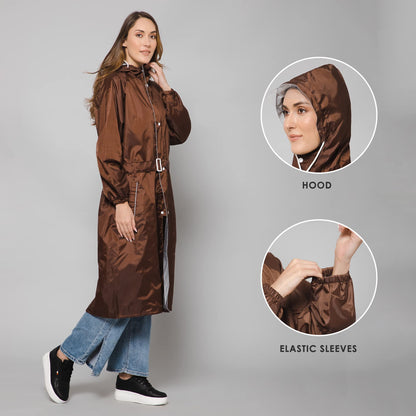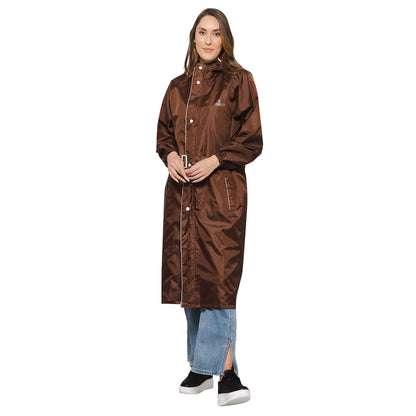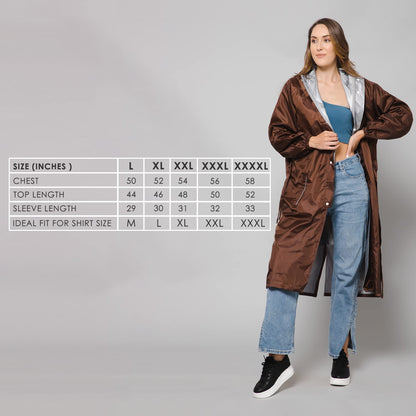 THE CLOWNFISH Raincoats for Women Raincoat for Ladies Waterproof Reversible Double Layer. Drizzle Diva Series (Brown, XX-Large)