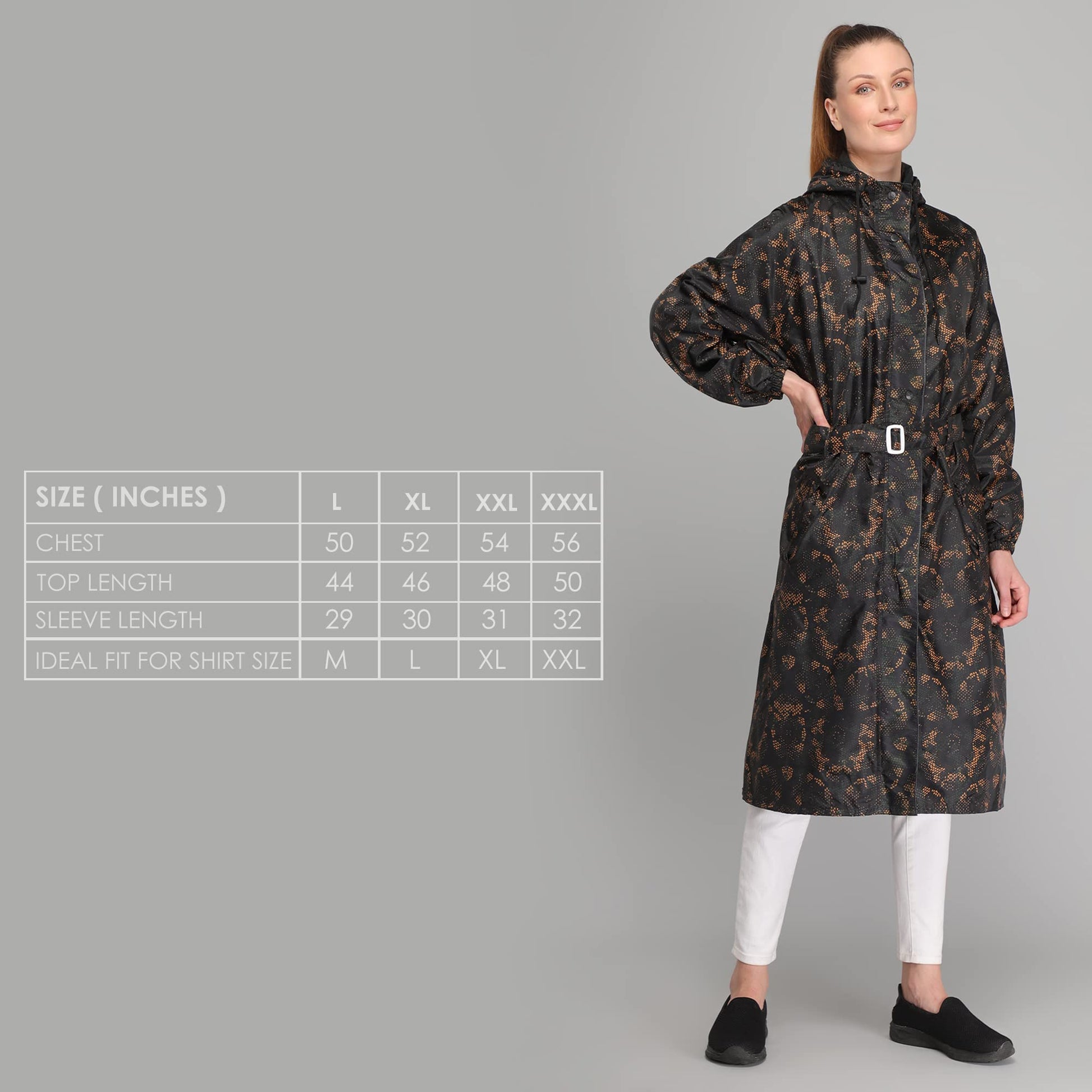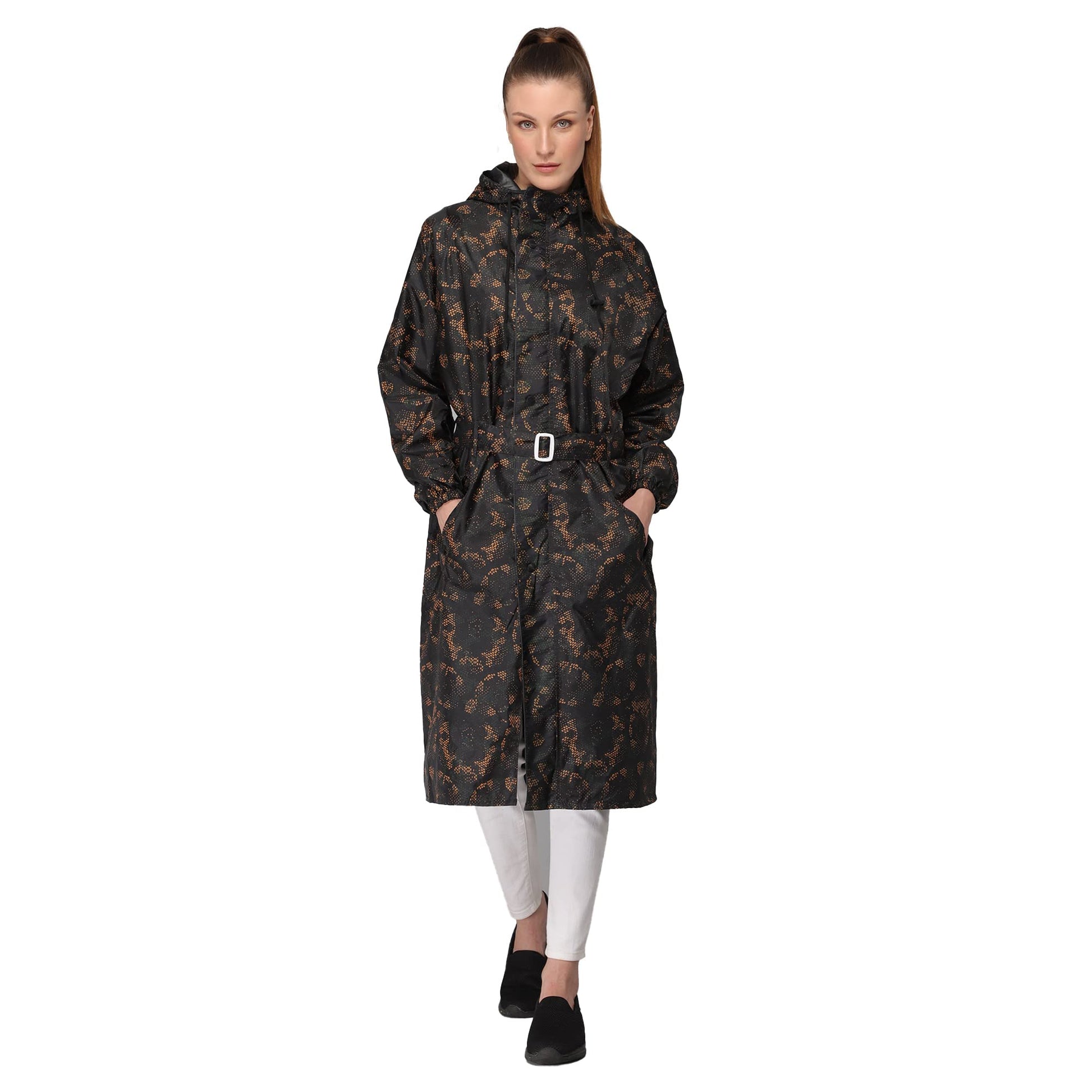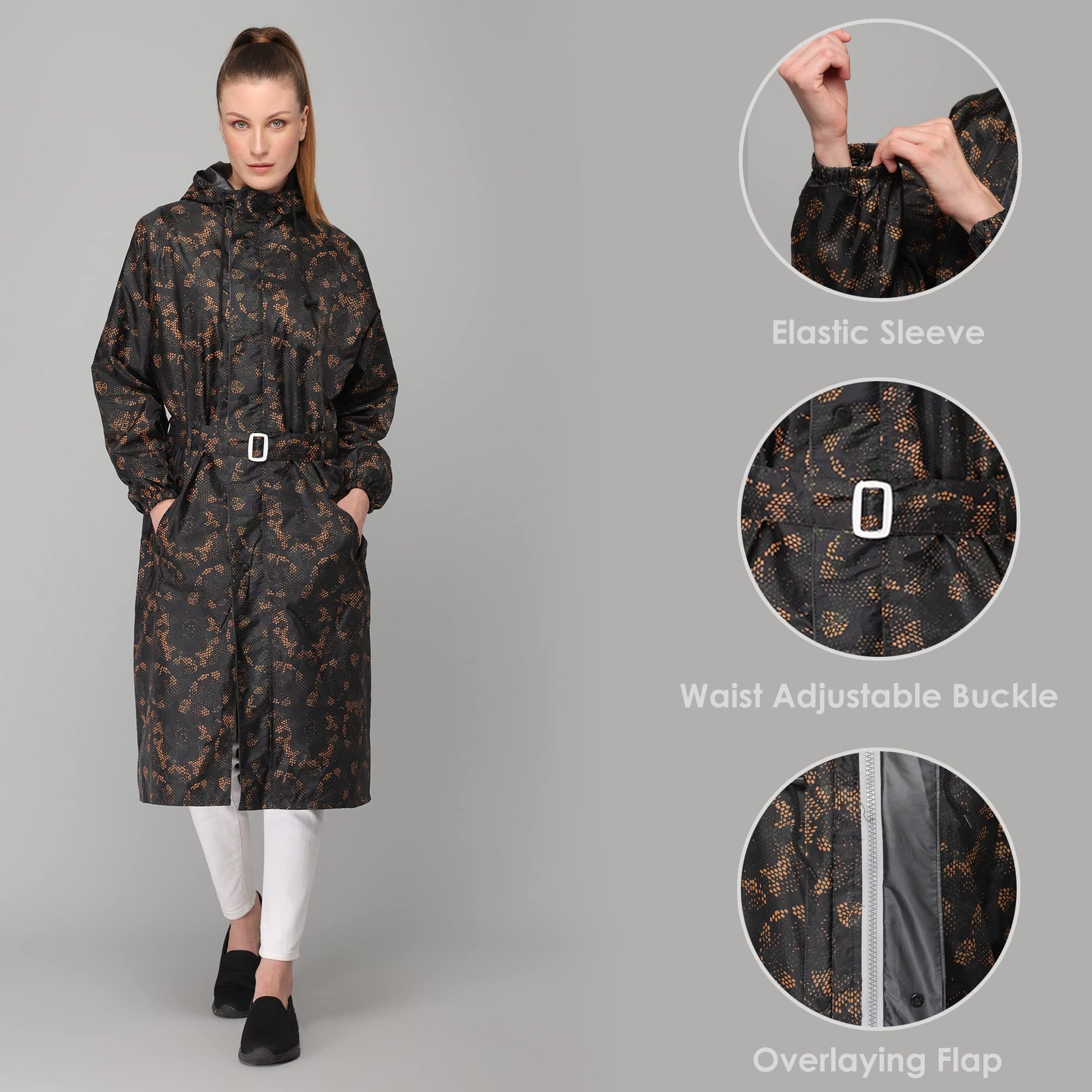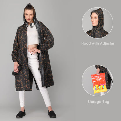 THE CLOWNFISH Juliet Series Raincoats for Women Rain Coat for Women Raincoat for Ladies Waterproof Reversible Double Layer Longcoat with Printed Plastic Pouch (Black, Large)