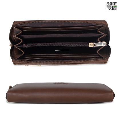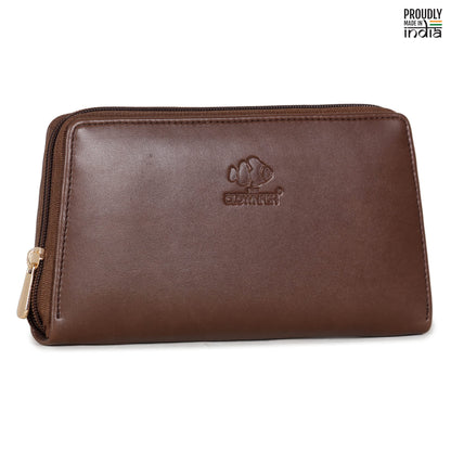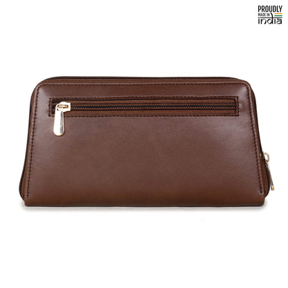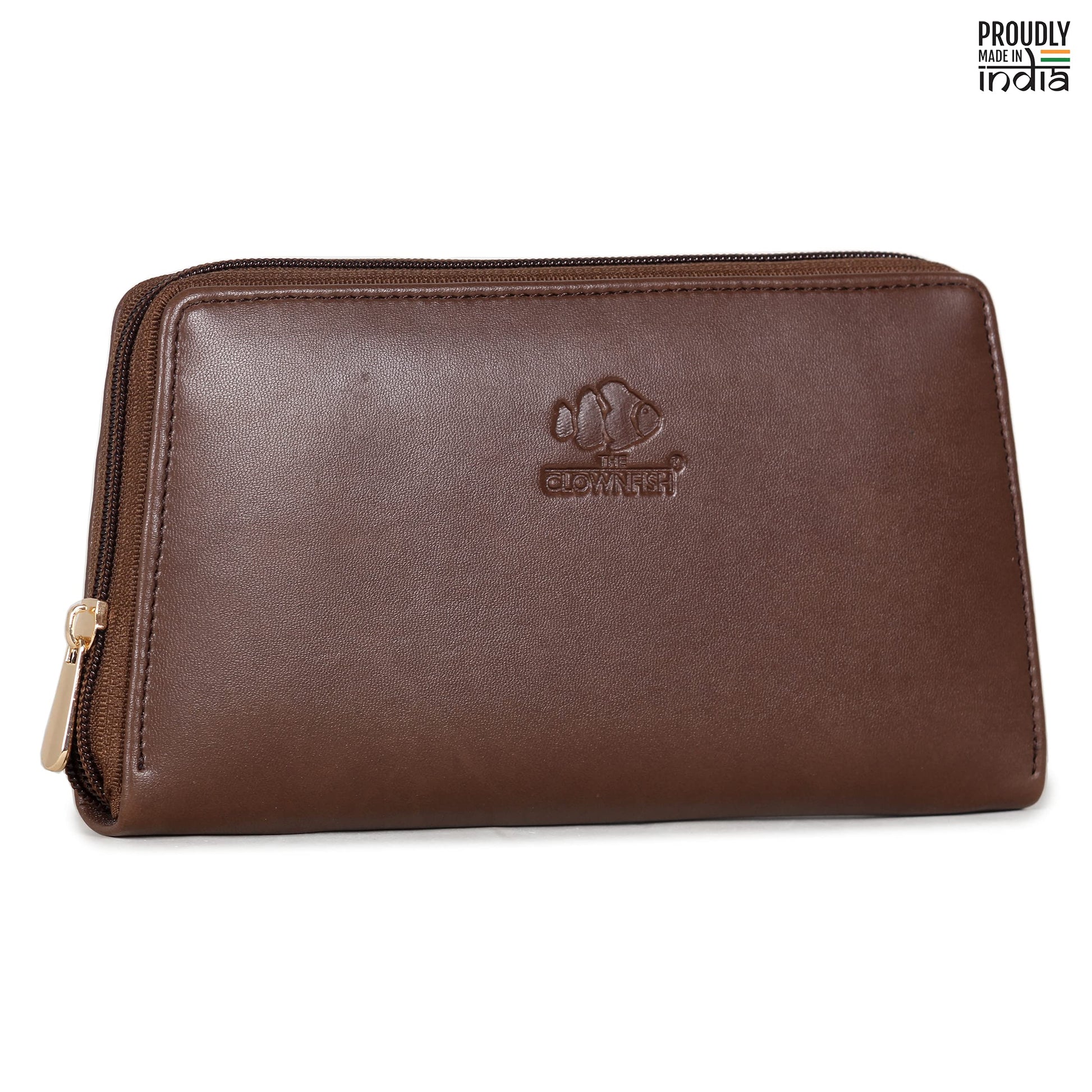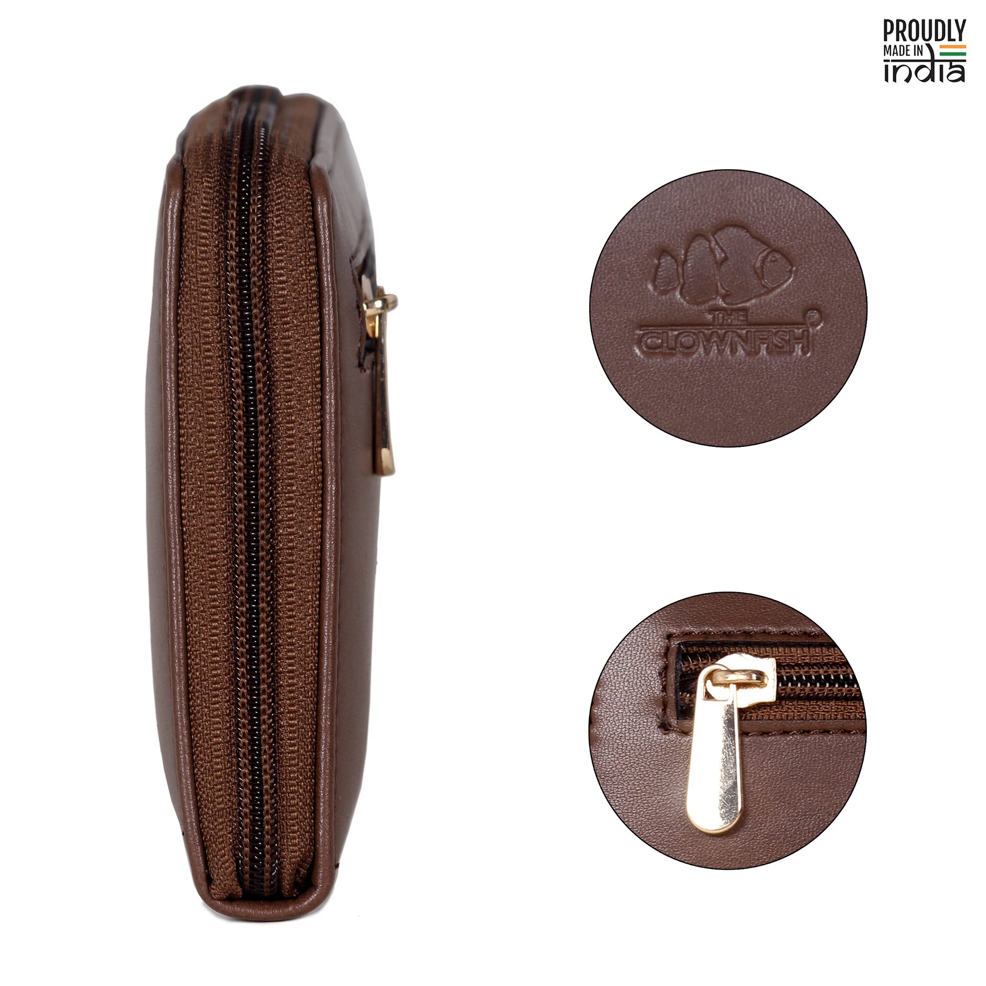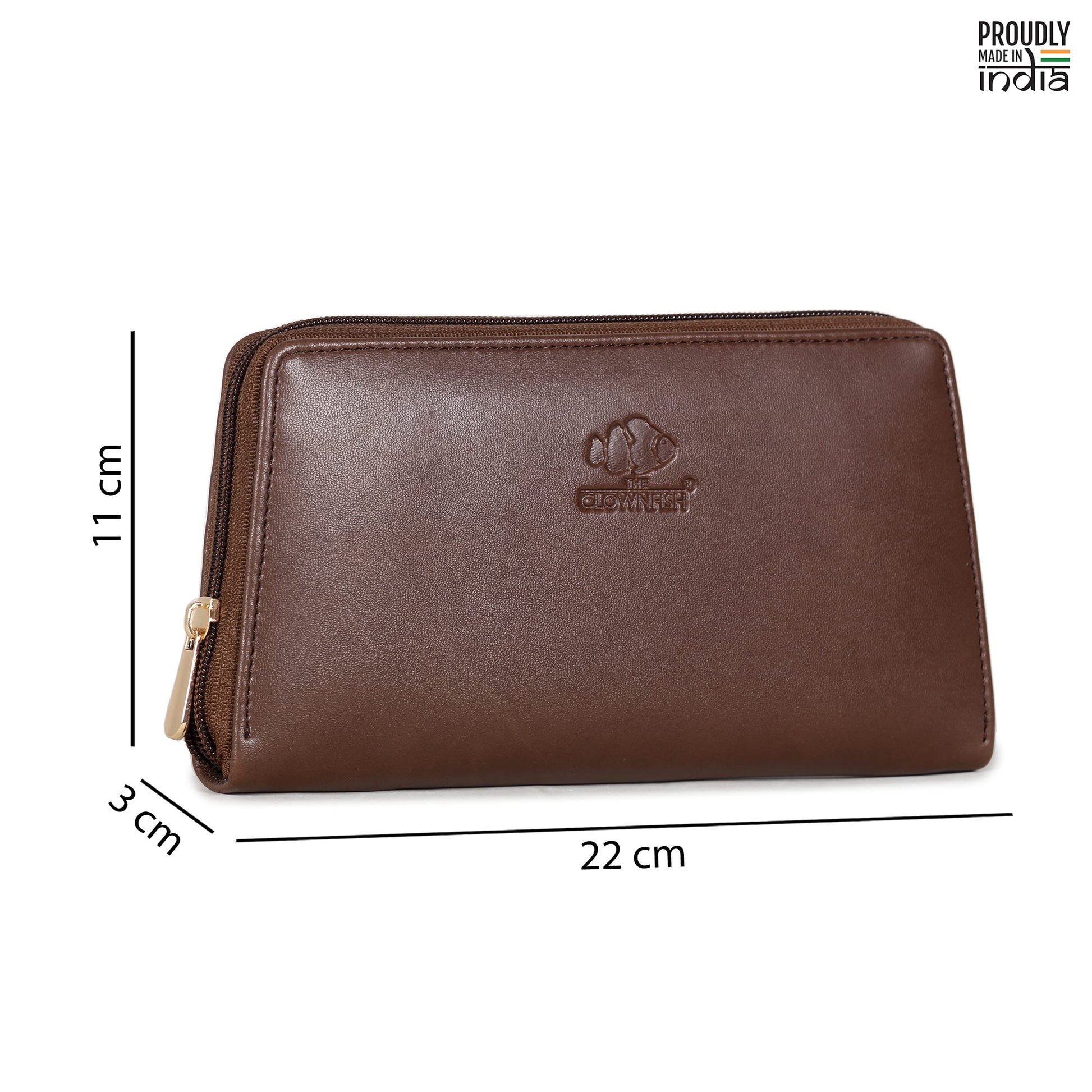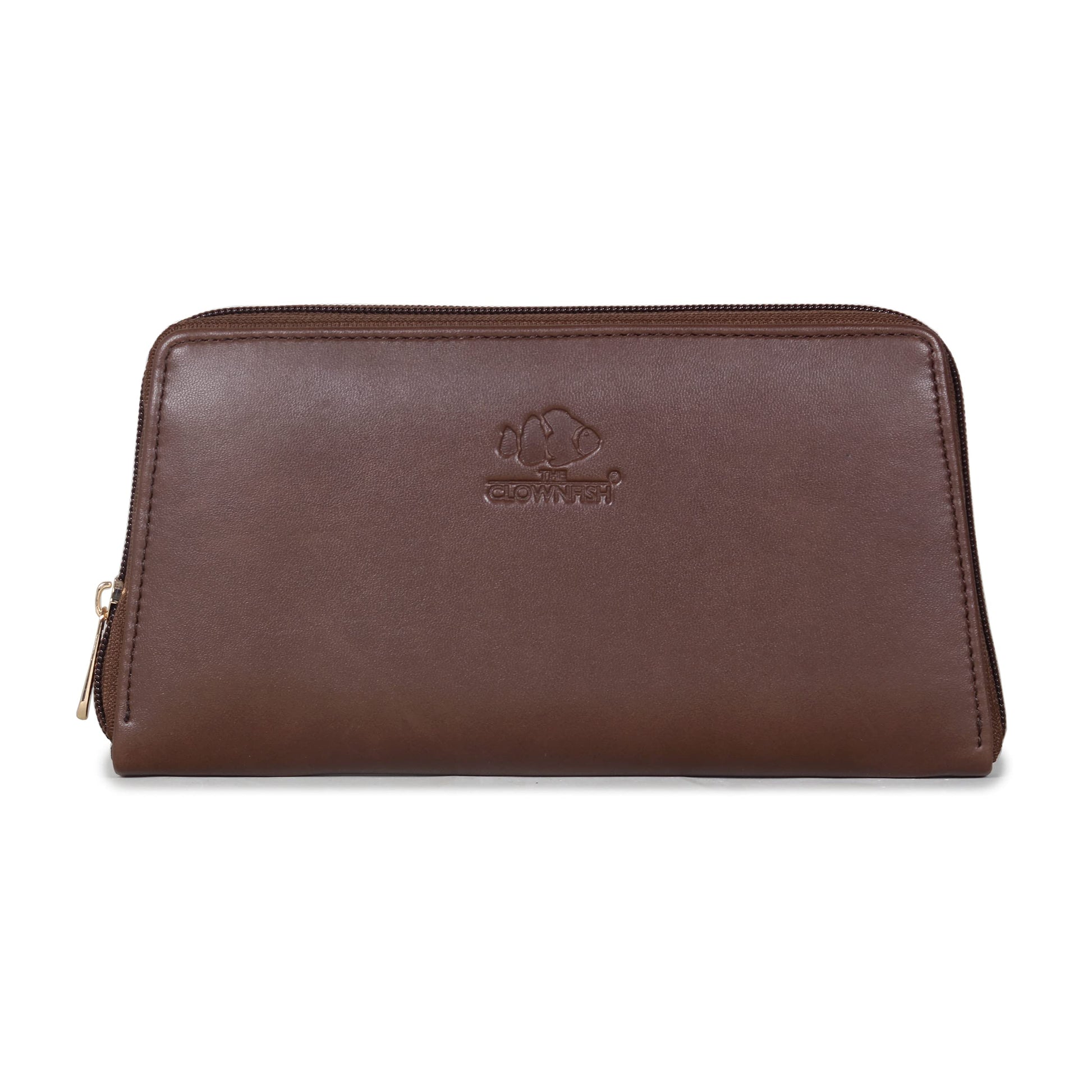 THE CLOWNFISH Evelyn Collection Womens Wallet Clutch Ladies Purse with multiple card slots (Dark Brown)