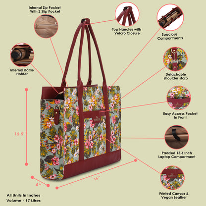 Women's Laptop Handbag: Vegan Leather Tote with 15.6" Laptop Sleeve | 17L | Multicolor