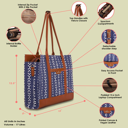 Women's Navy Blue Tote: Stylish Laptop Handbag with 15.6" Sleeve | 17L | Adjustable Sling Strap