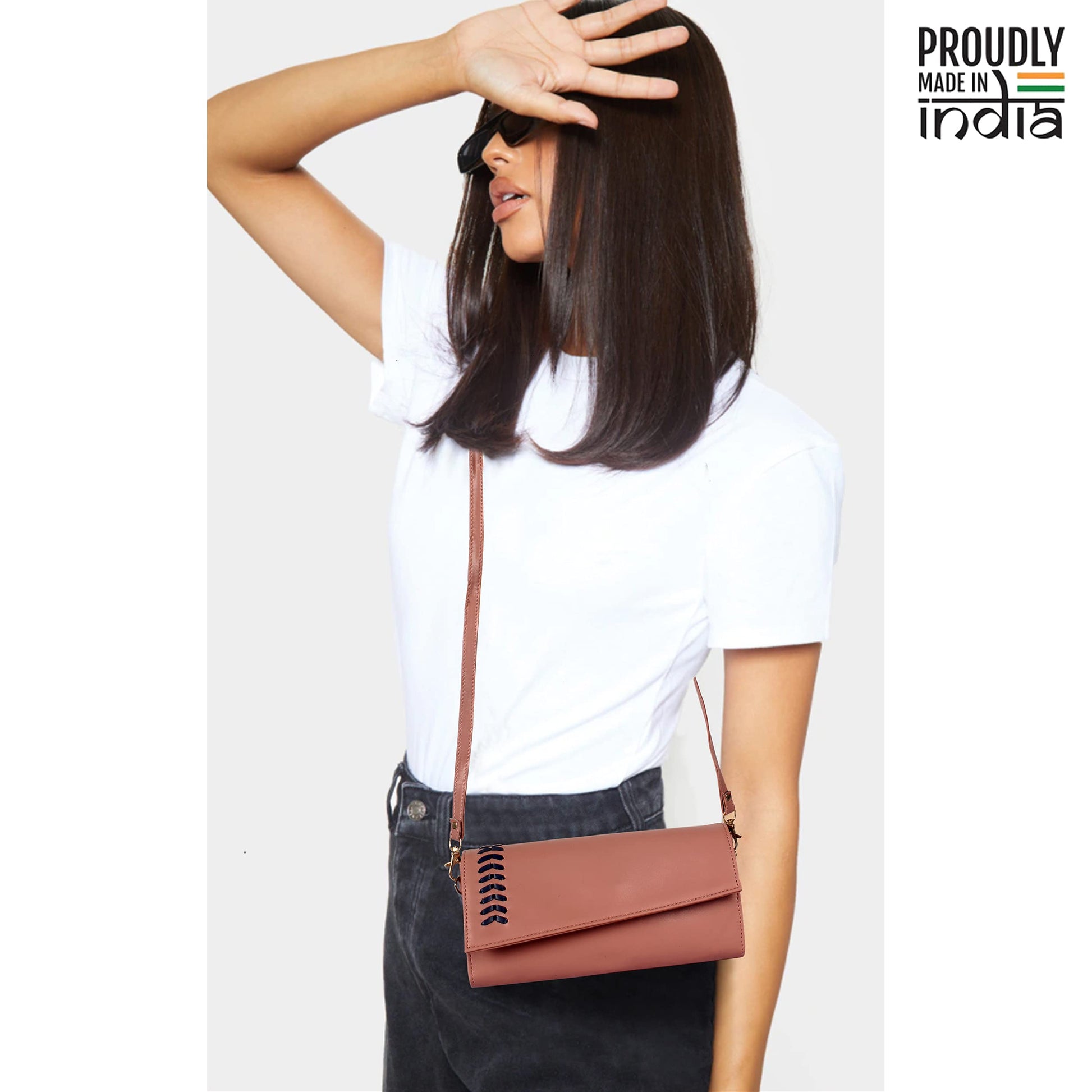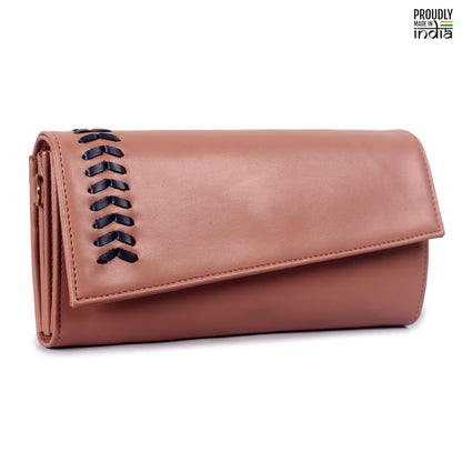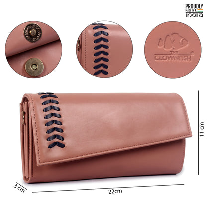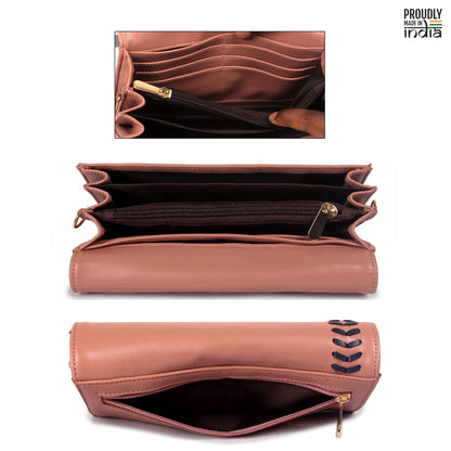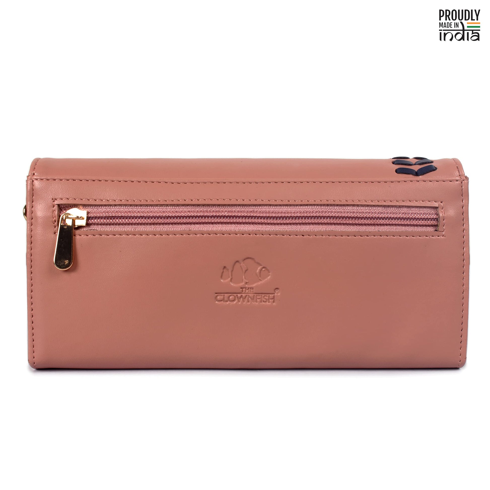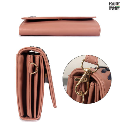 THE CLOWNFISH Myra Collection Womens Wallet Clutch Ladies Purse Sling Bag with Card slots (Apricot)