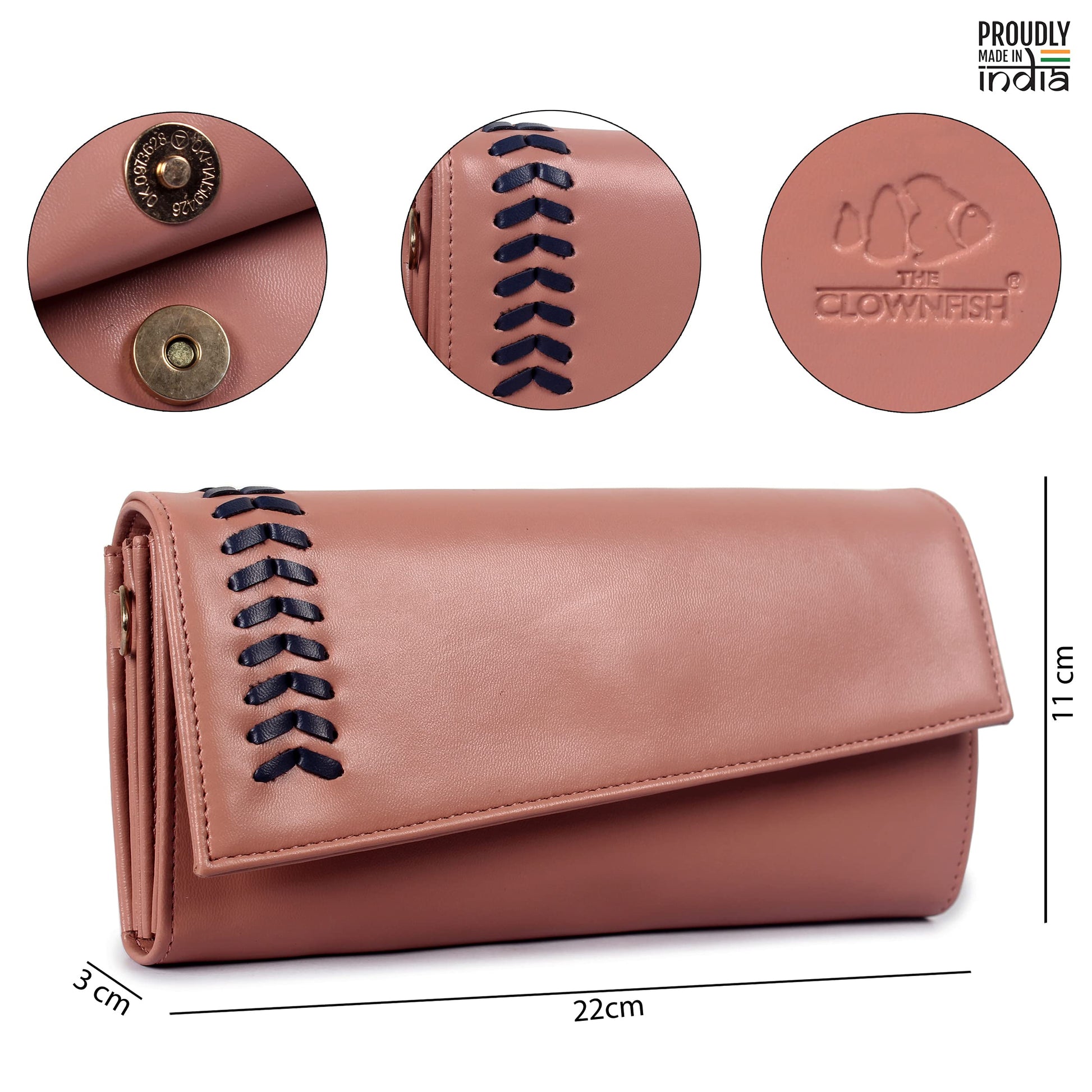 Introducing the THE CLOWNFISH Myra Collection Womens Wallet Clutch, your go-to accessory for any occasion. Made from premium faux leather, this slim wallet is designed for women who appreciate both style and functionality. The chic apricot color and elegant design make it perfect for various settings, from casual outings to business meetings. With multiple compartments and card slots, it offers ample space for organizing your essentials.