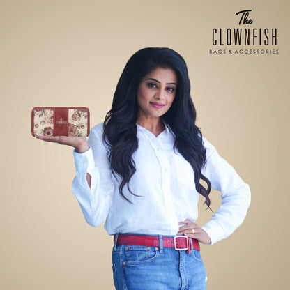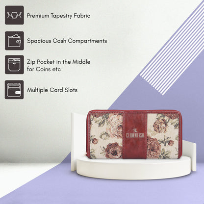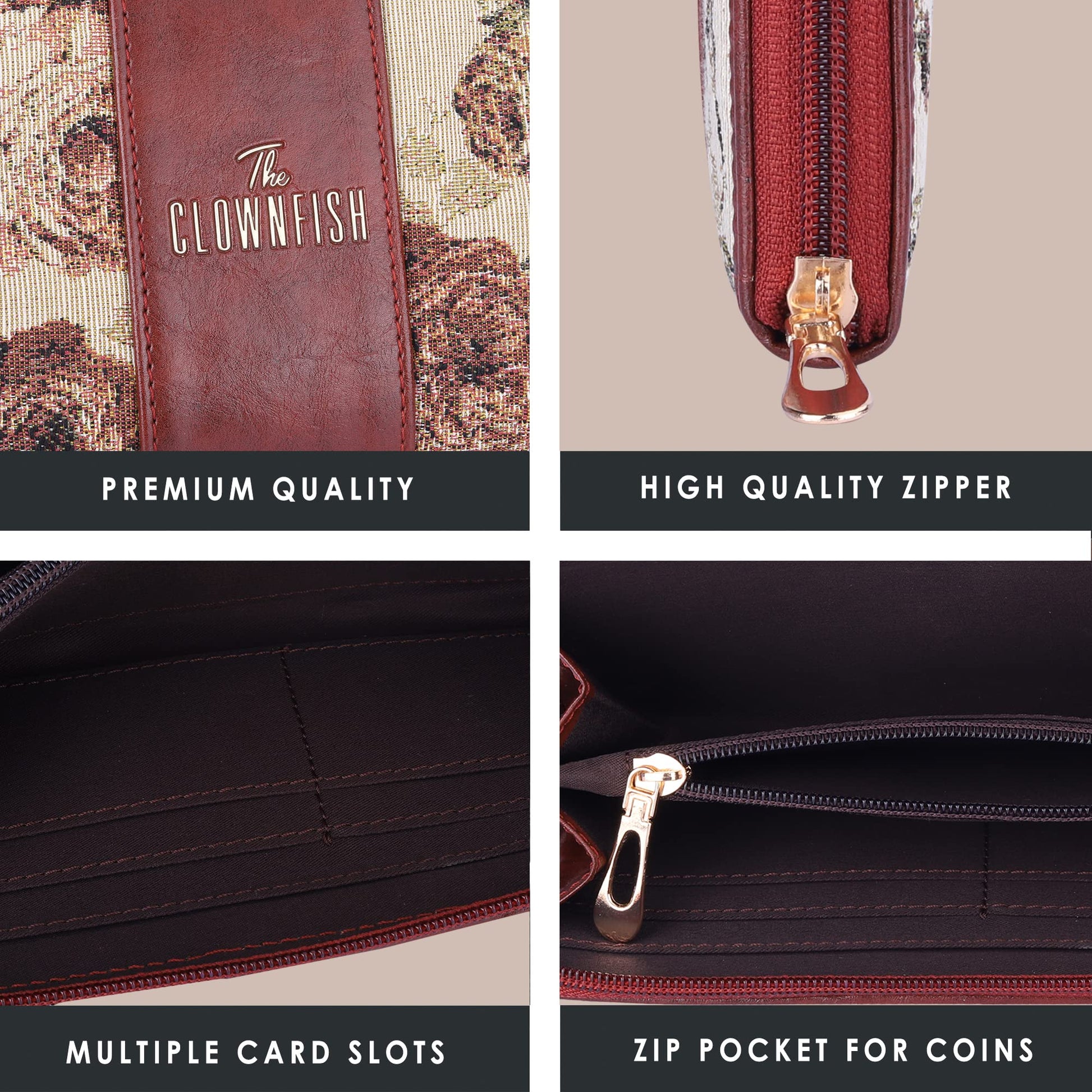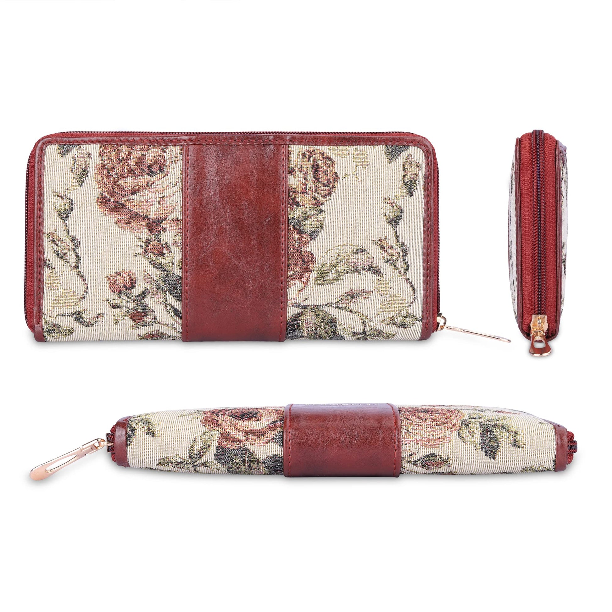 Womens Wallet with Floral Tapestry & Faux Leather | Slim Design | Brown- Floral