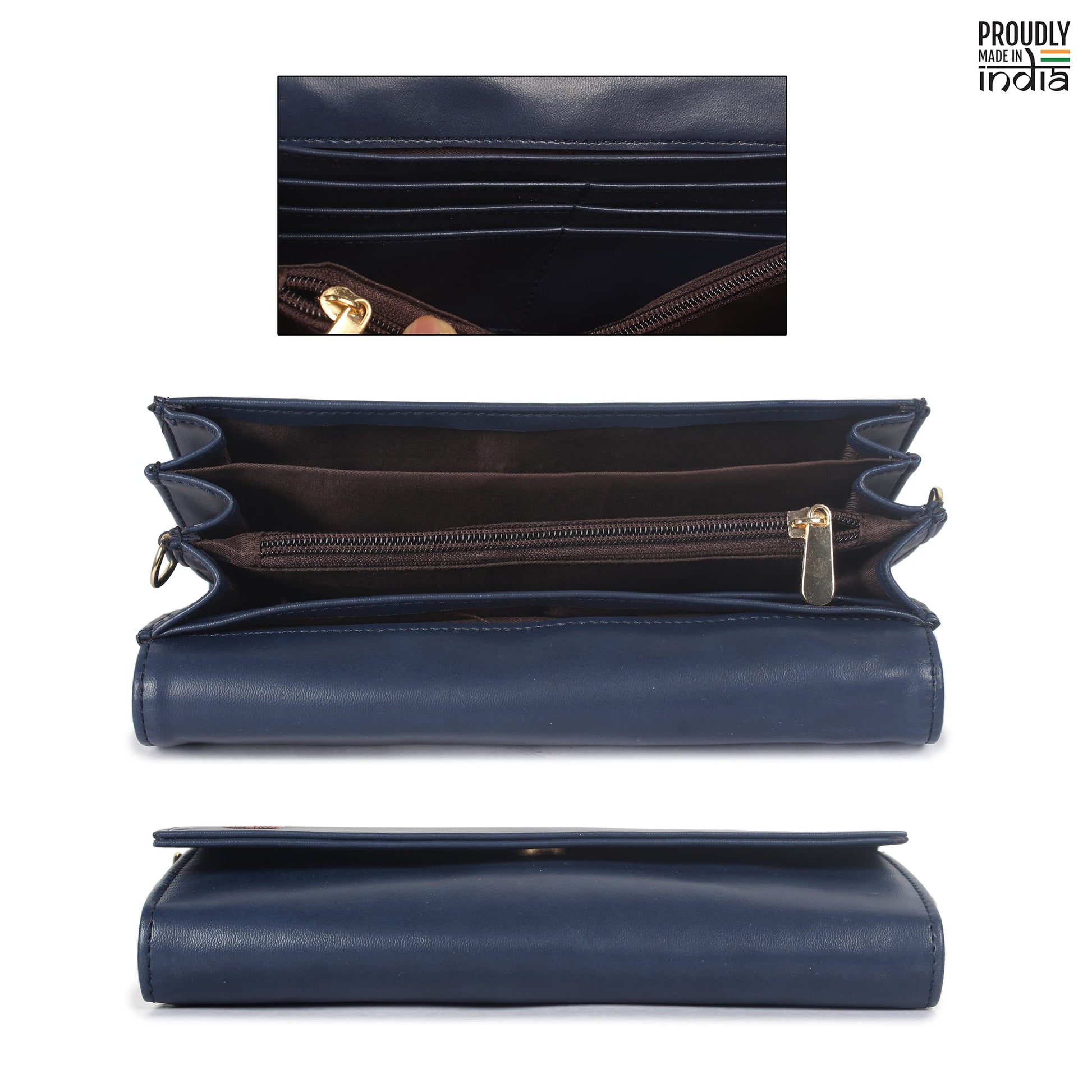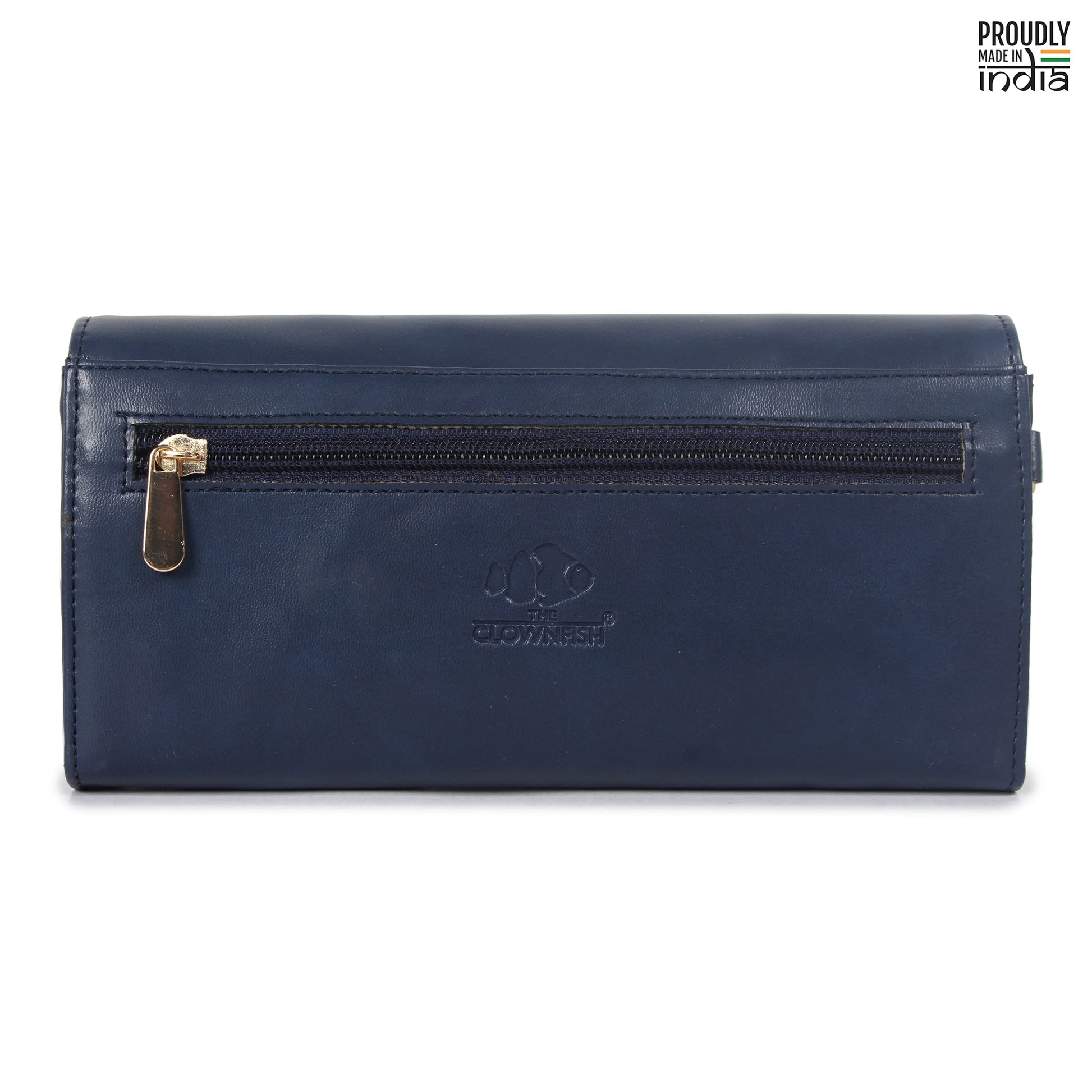 The Clownfish Ivana Series Womens Wallet Clutch Ladies Purse Sling Bag with Multiple Card Slots (Navy Blue)