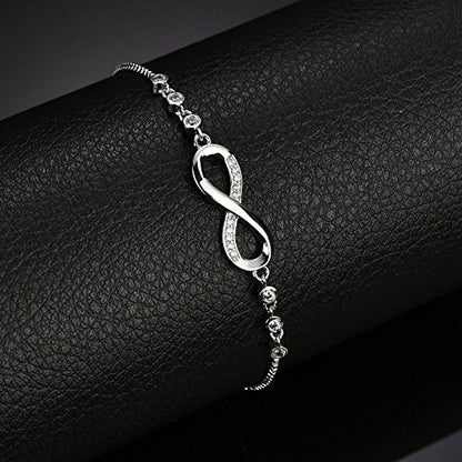 Valentine Gift for Girls Bracelet for Women Silver Bracelets for Women | Valentines Special Infinity Love Crystal Chain Bracelet | Birthday Anniversary Gift For Girlfriend Wife