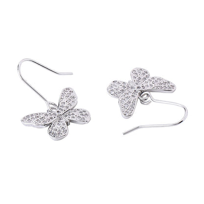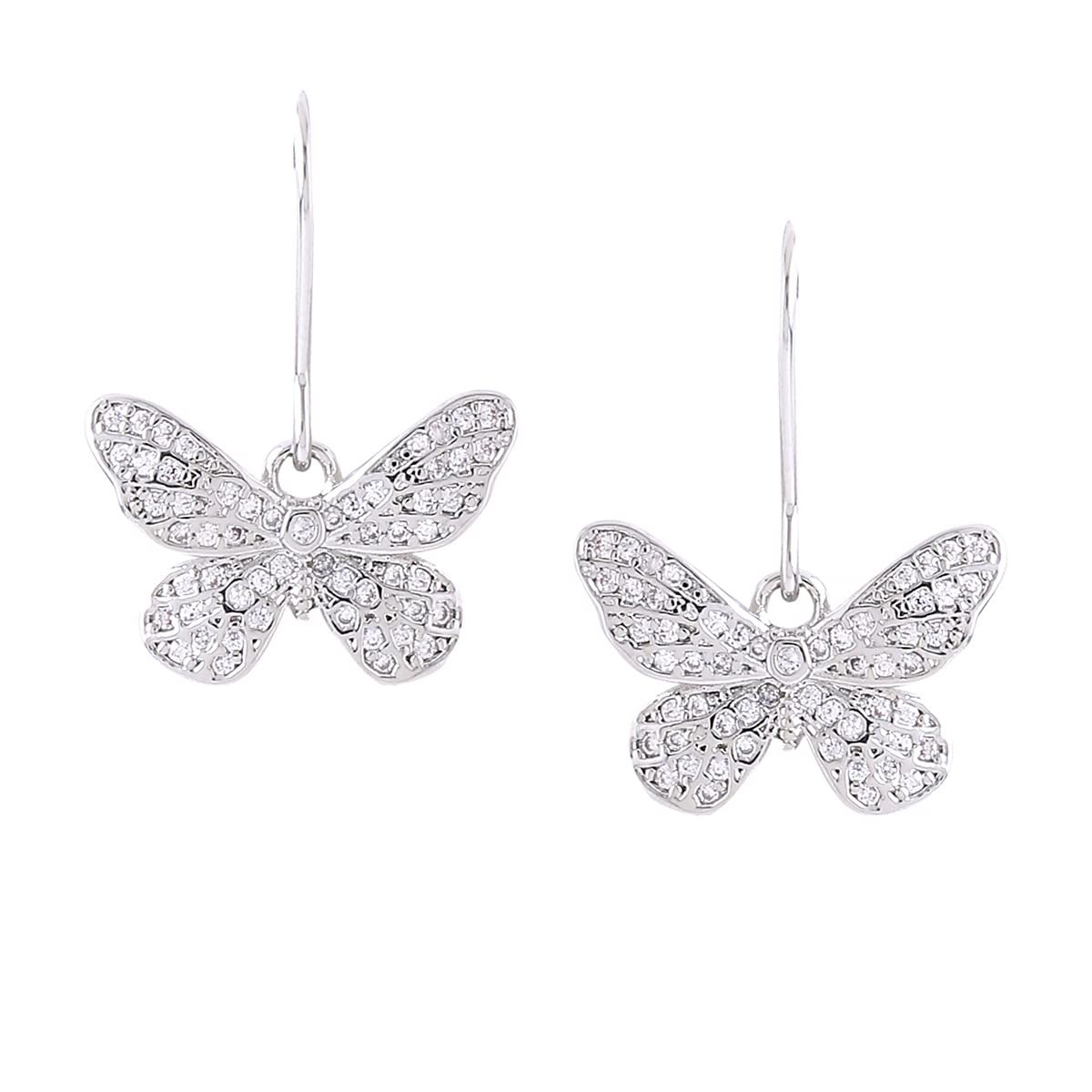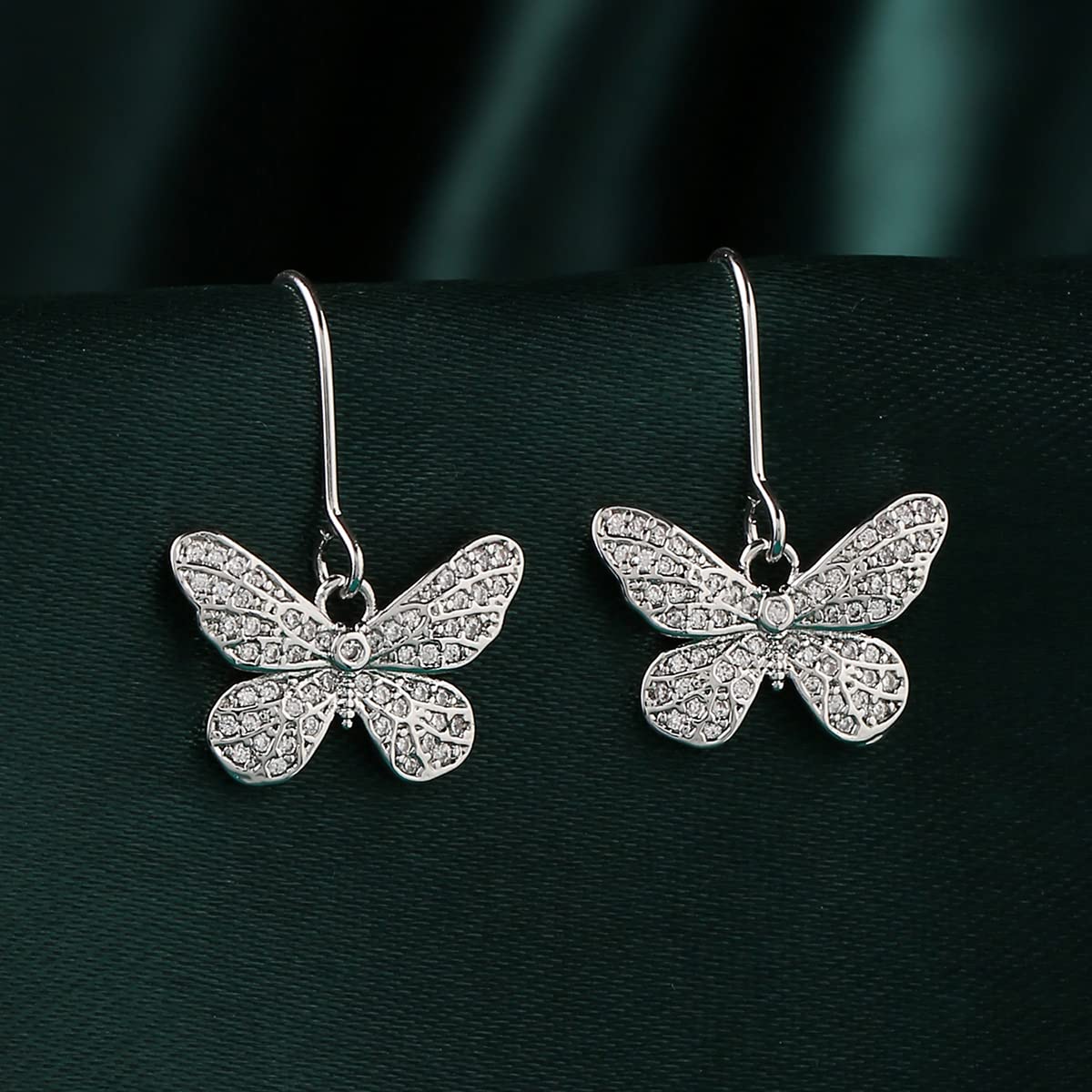 Earrings For Women Silver Toned Sparkling Crystal Studded Butterfly Hanging Charm Drop Earrings For Women and Girls