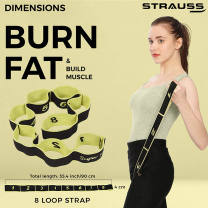 Strauss Multi 8 Loop Yoga Strap & Stretching Belt | Ideal for Yoga, Pilates, Therapy, Dance, Gymnastics, Ballet & Flexibility | Nylon & Cotton Skin Friendly Material