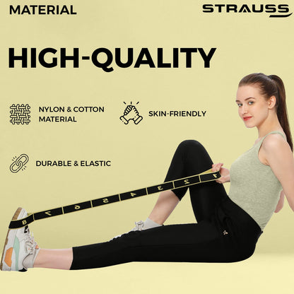 Introducing the Strauss Multi 8 Loop Yoga Strap & Stretching Belt by Strauss Sports, your ultimate companion for achieving greater flexibility and enhanced workouts. Crafted from nylon and cotton, this versatile strap facilitates smooth stretching, making it ideal for activities like yoga, Pilates, therapy, gymnastics, and dance. With a stretch length ranging from 90 cm to 180 cm, it comfortably accommodates various body types and skill levels.