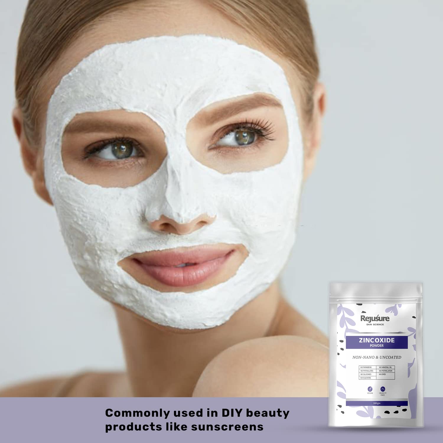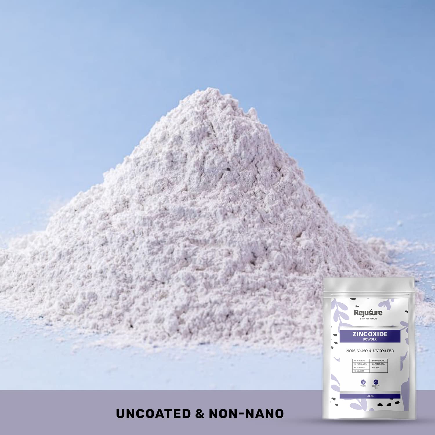 Rejusure Zinc Oxide Powder Improves Skin Texture & Prevent the Skin from Sunburn, Zinc Oxide Powder for Face, Non Nano & Uncoated for DIY – 100 gm