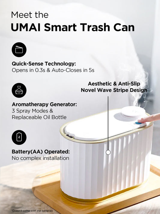 4L Automatic Smart Sensor Dustbin with Lid and Essential Oil Diffusers for Home, Office, Kitchen, Bathroom, Desktop- Space saver, Controls Odor with 3 spray modes (White)