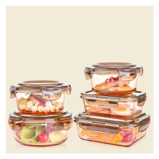 5-Piece Set: Leak-Proof Glass Storage Containers - Lockable Lids, Spill-Proof | Lunch Box Set | Clear
