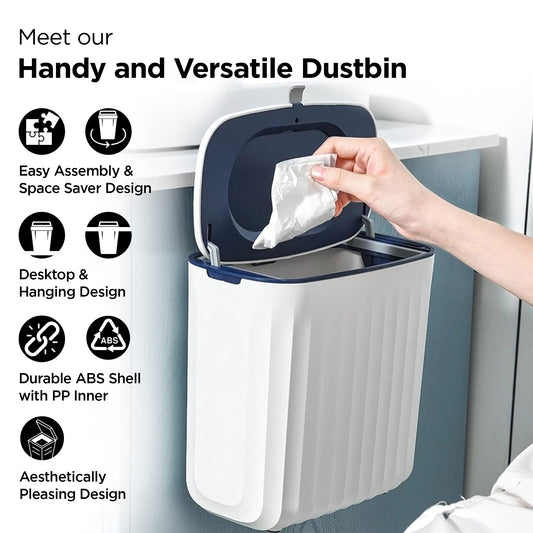 8L Plastic Hanging Dustbin For Kitchen | Trash Bin 25x15x25cm | Garbage Bin For Bathroom With Lid | Waste Bin | Bathroom Dustbin Small Size | Small Dustbin For Kitchen Sink- White