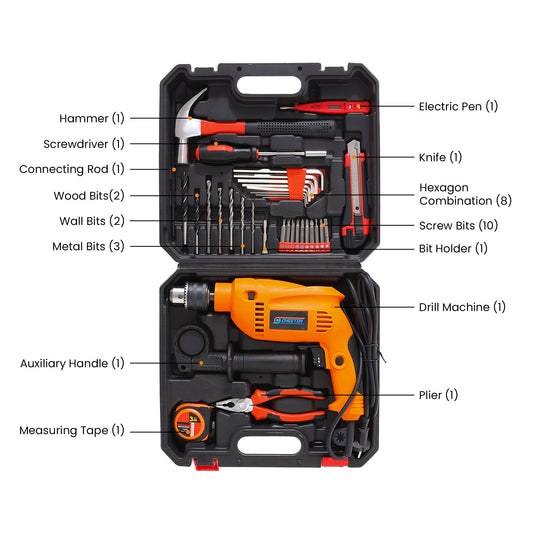 CHESTON Drill Tool Kit 550W 13mm Drill Machine For Home Use | Tool Kit For Home Use Multipurpose | Drill Kit with Variable Speed Set of - 36 Drill Bits, Hammer, Electric Pen, Measuring Tape, Box